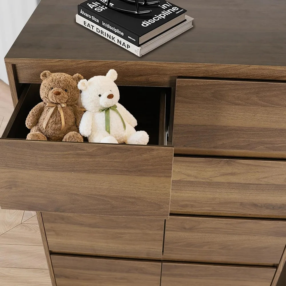 Modern Tall Drawer Double Dresser Wood for Bedroom