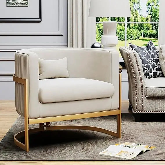 Modern Velvet Barrel Chair with Gold Legs Upholstered