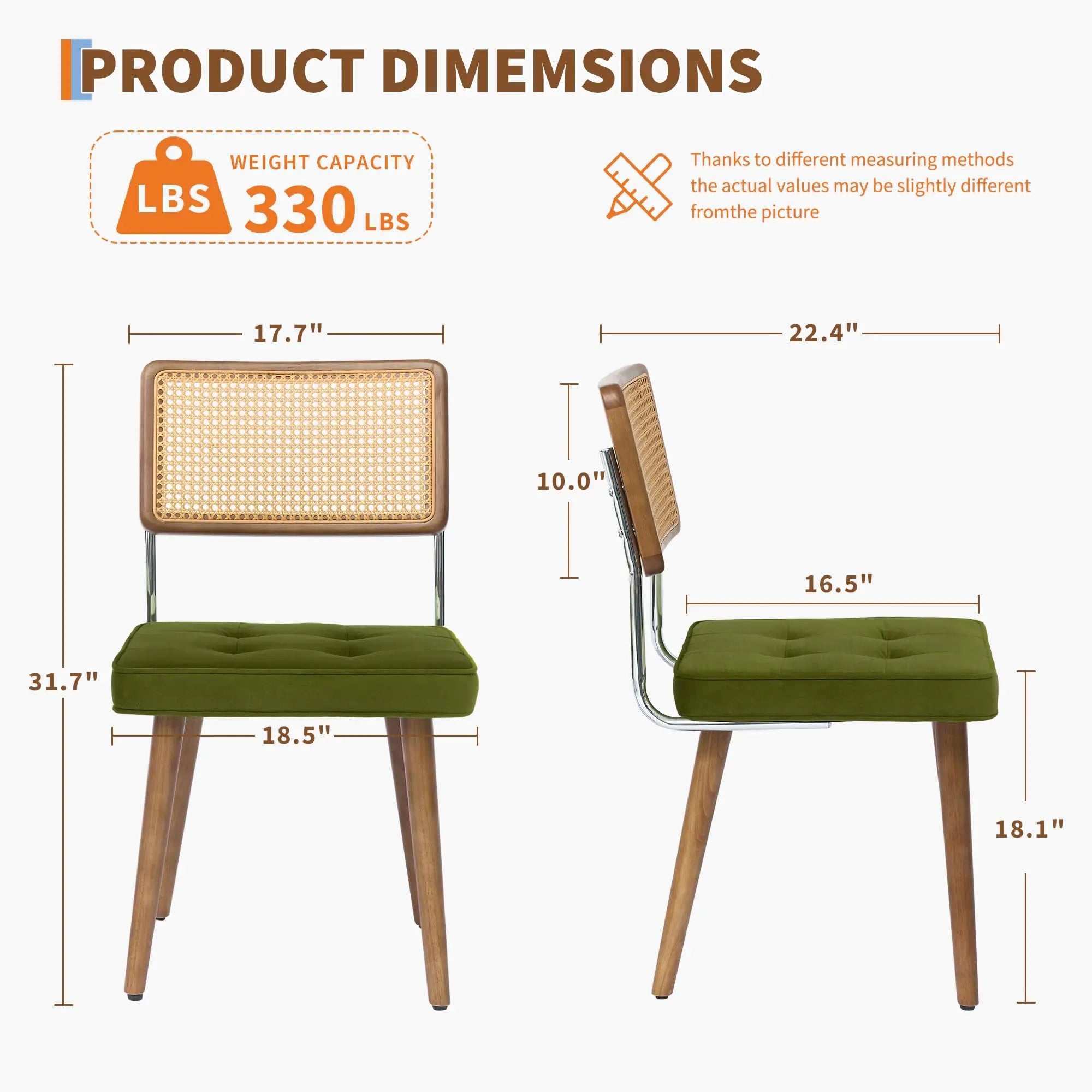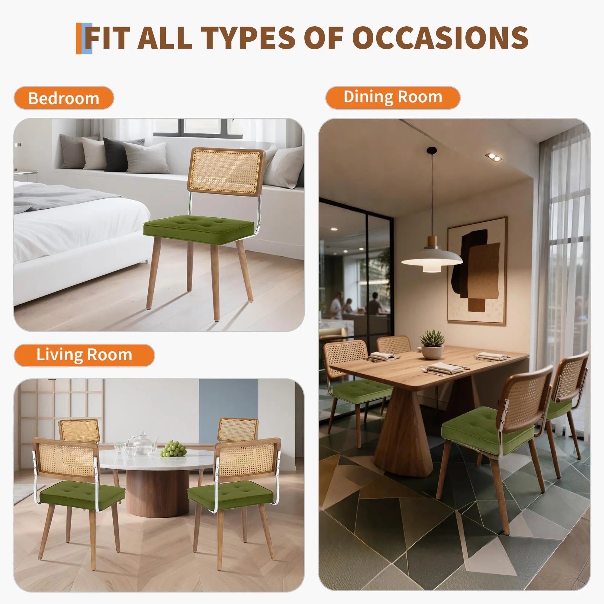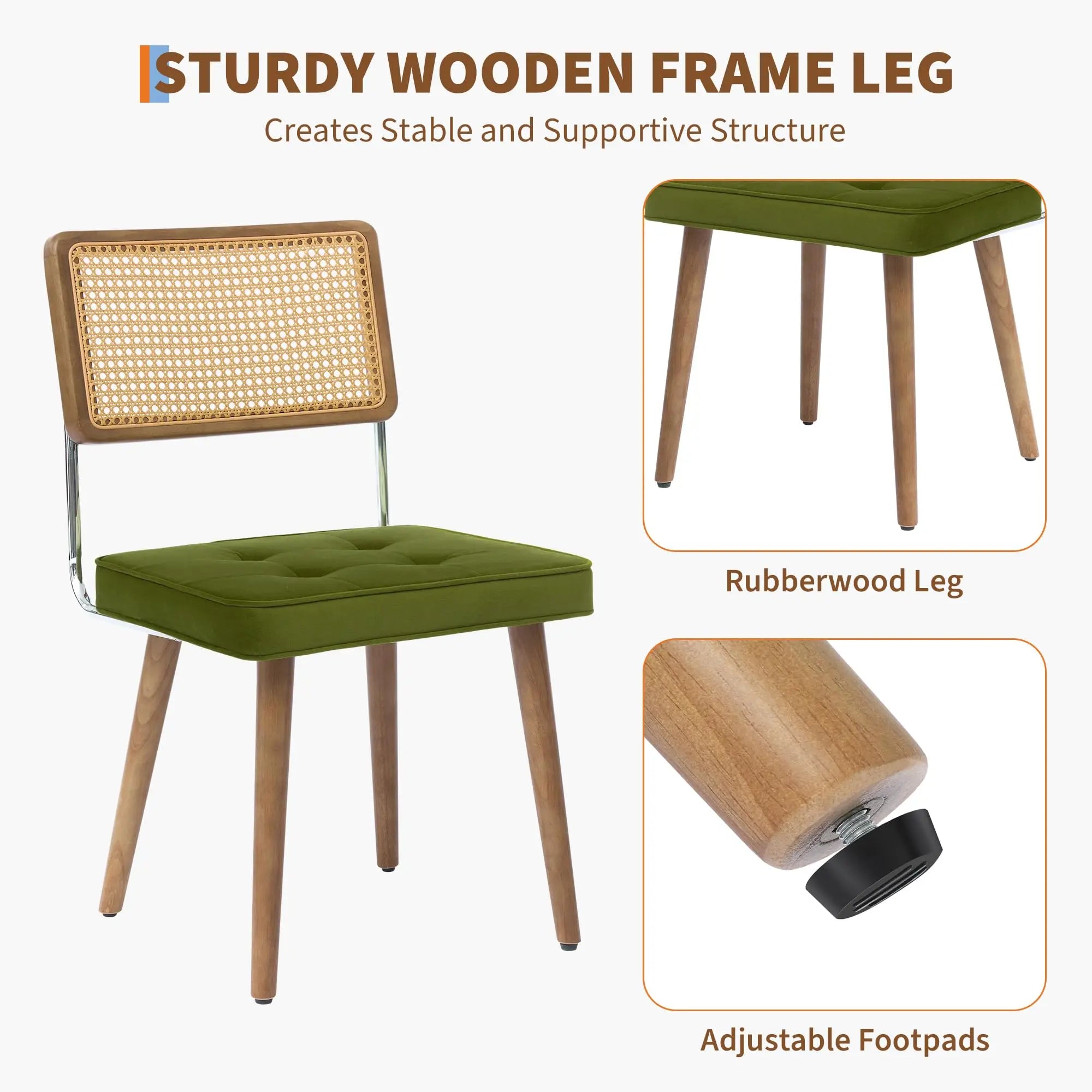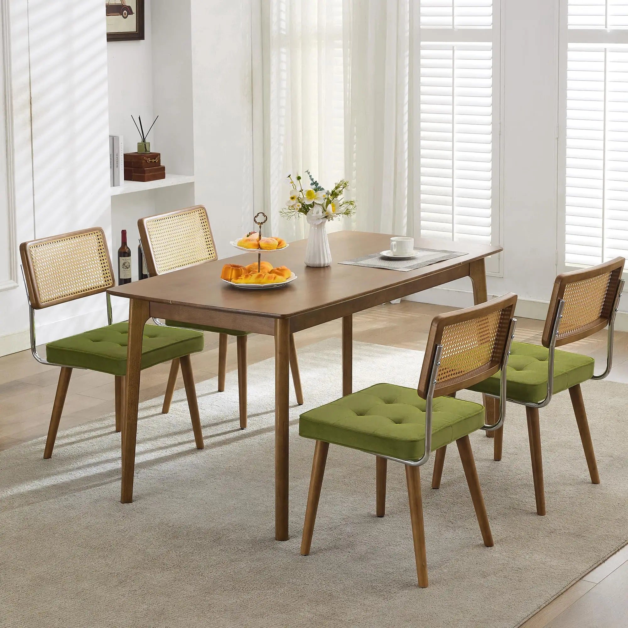 Natural Rattan Dining Chairs Velvet Upholstered Kitchen with Tall