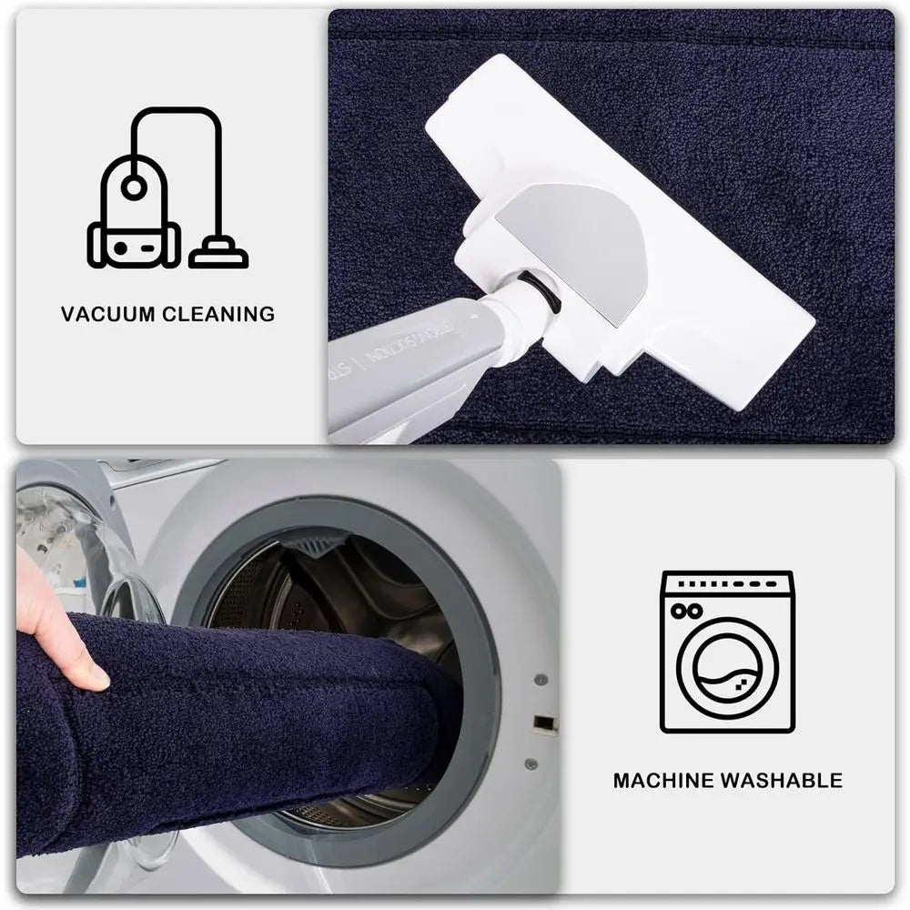 Navy Blue Machine Washable Runner Rug Non Slip Super