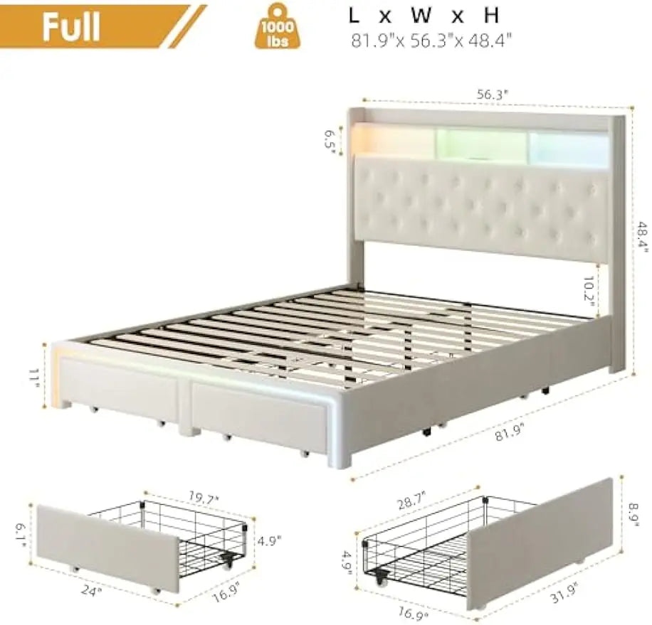 Full Led Bed Frame with Storage Headboard Charging (Full)