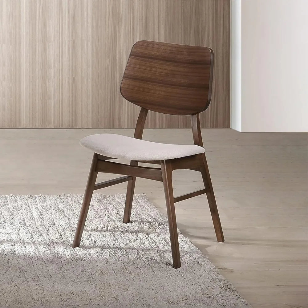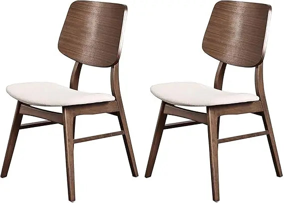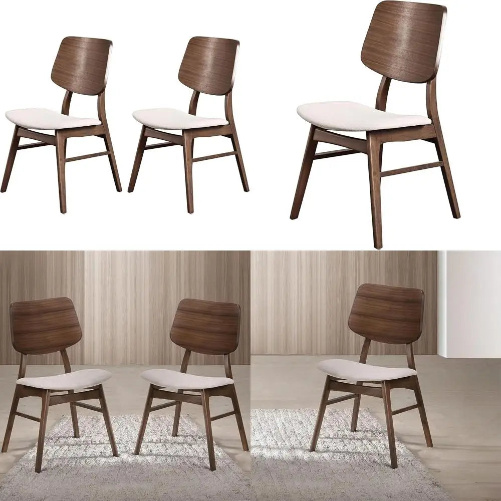 Oscar Dining Chairs Set Natural Beige Polyester Fabric Walnut