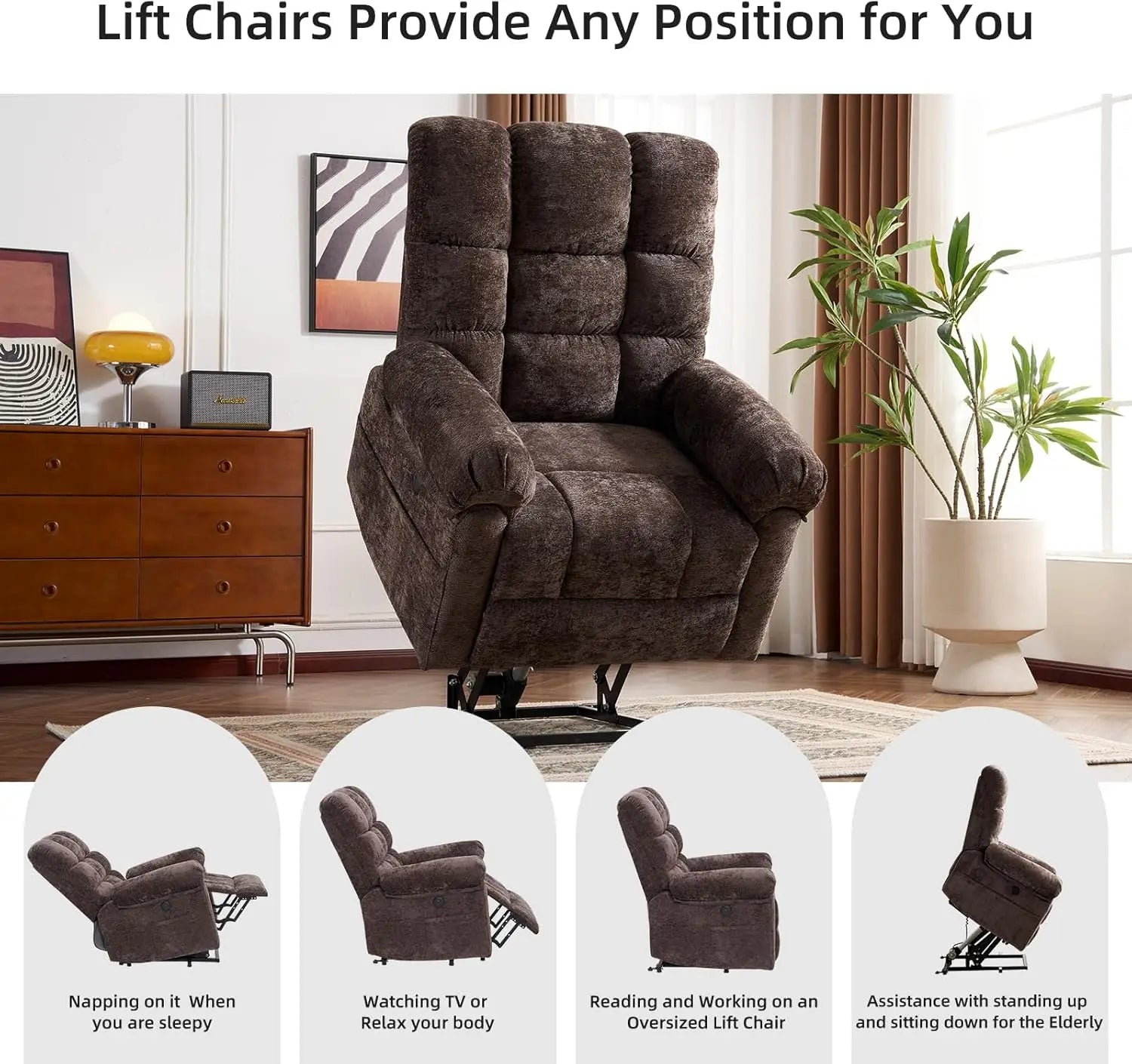 Oversized Lift Recliner Chair with Massage Heat Wide Chenille