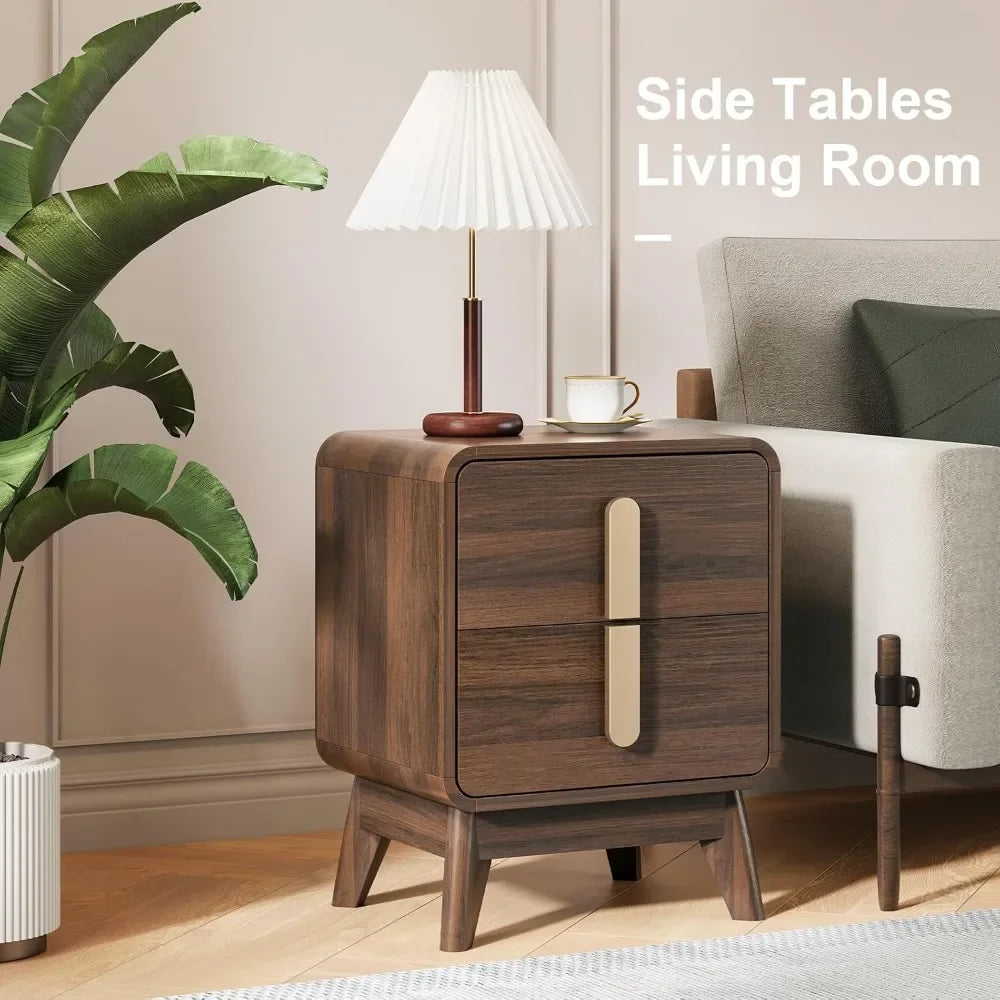 Pair Mid Century Modern Nightstands with Drawers Metal Handles