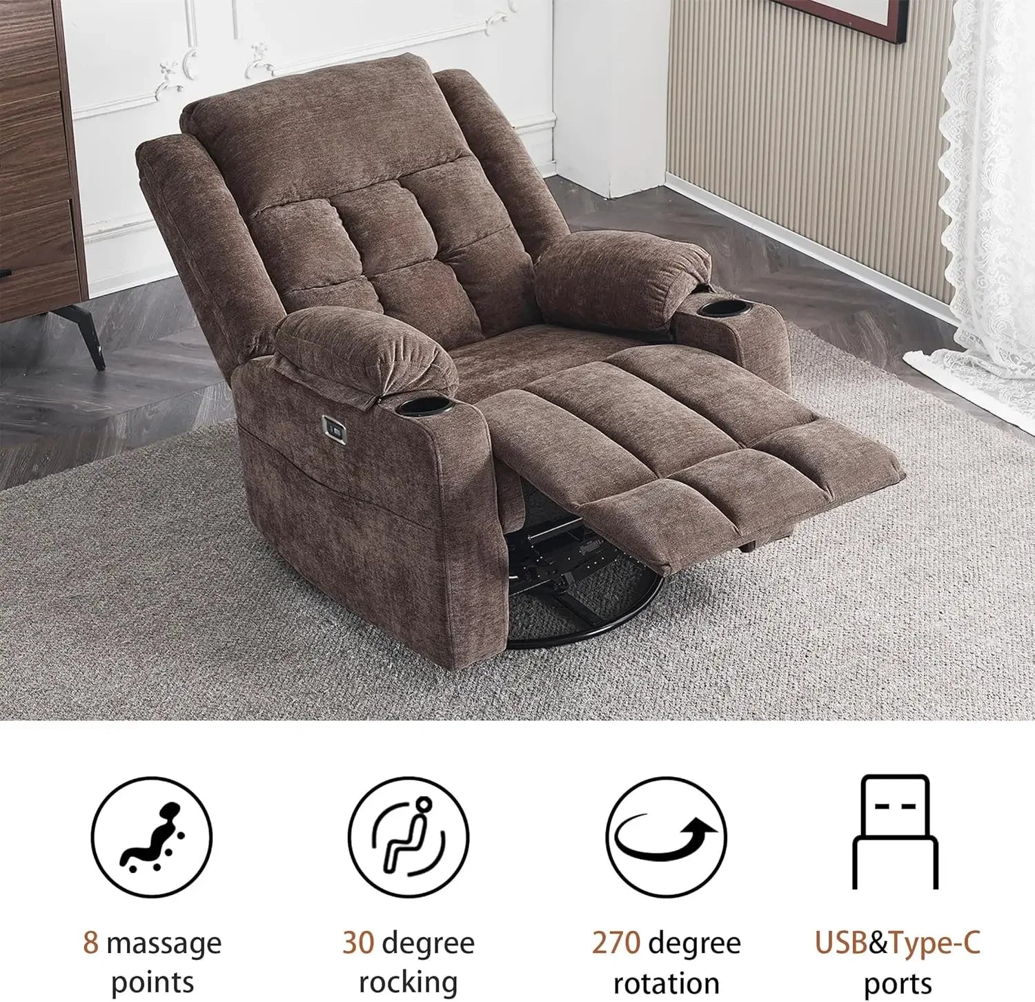 Power Swivel Rocker Recliner Chair for Adults with Massage