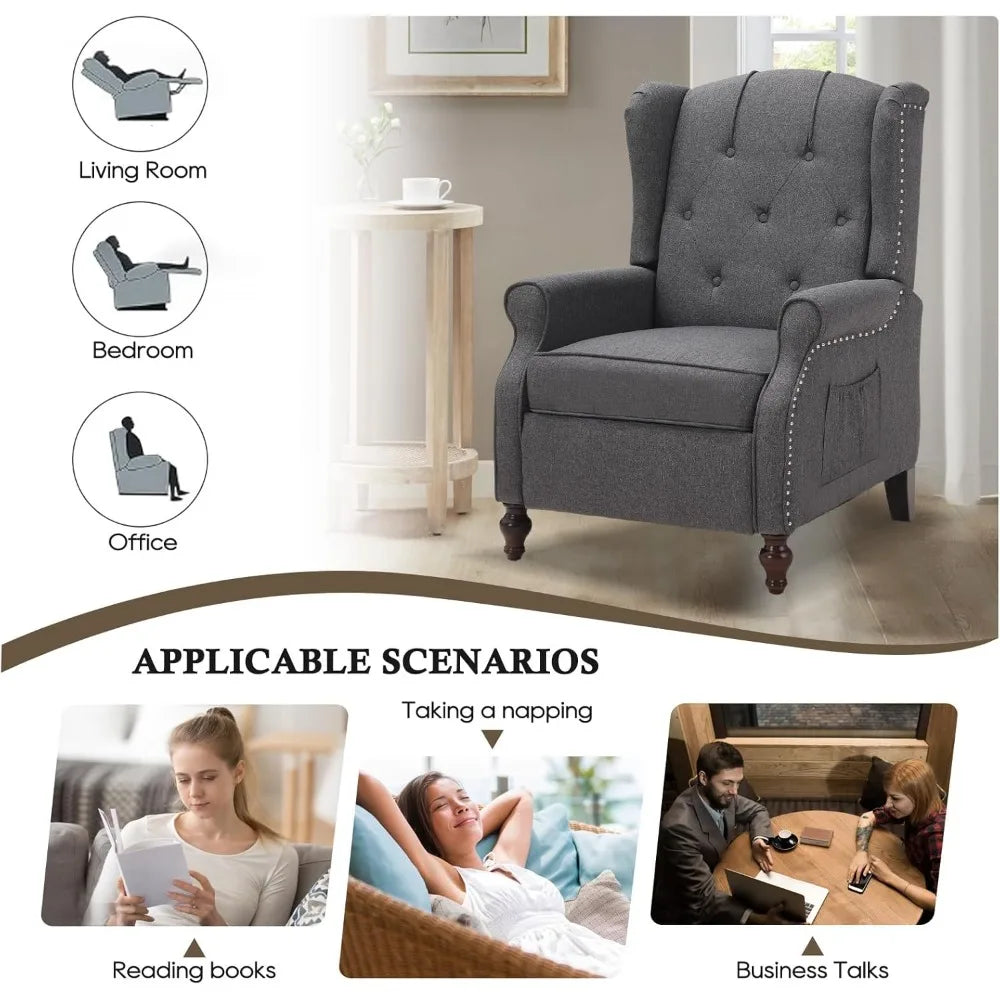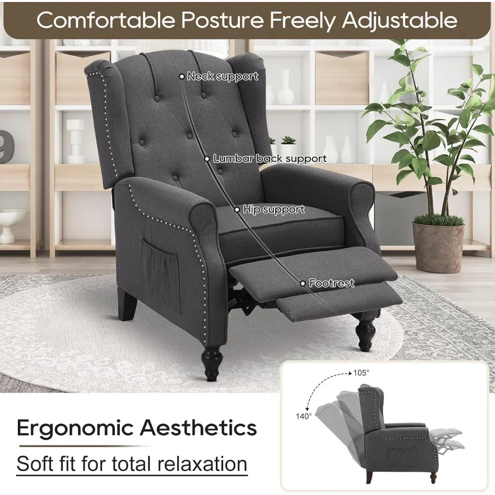 Recliner Chair with Massage and Heat Tufted Fabric Push
