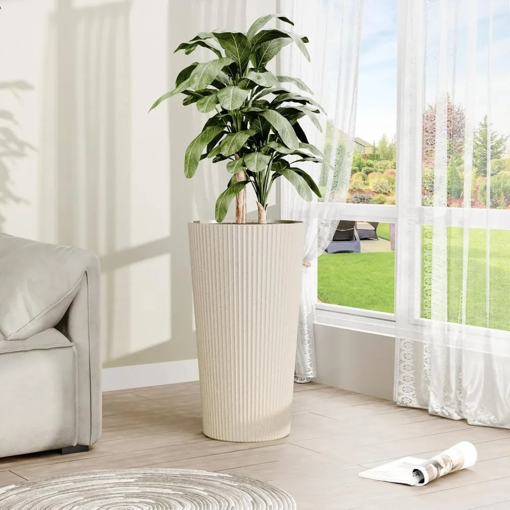 Set Large Outdoor Plastic Striped Flower Pots Tall