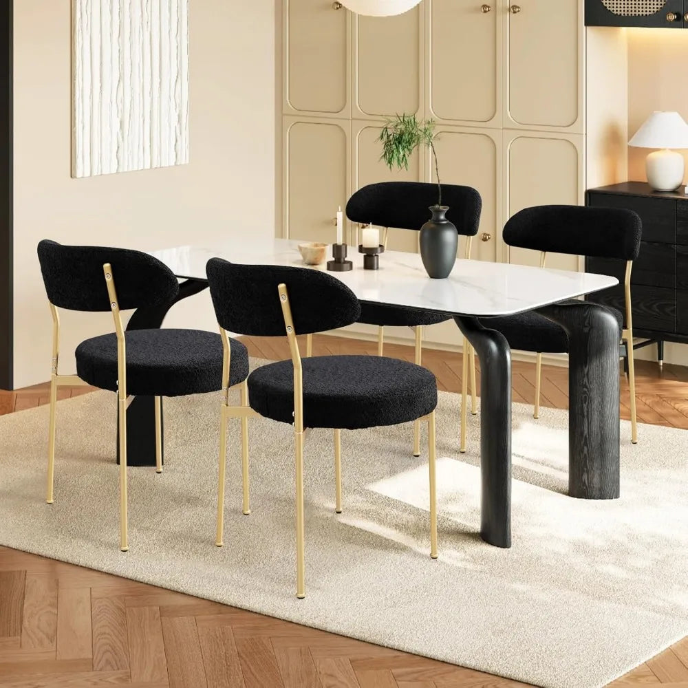 Soarflash Dining Chairs Black Boucle Set Kitchen Room Curved