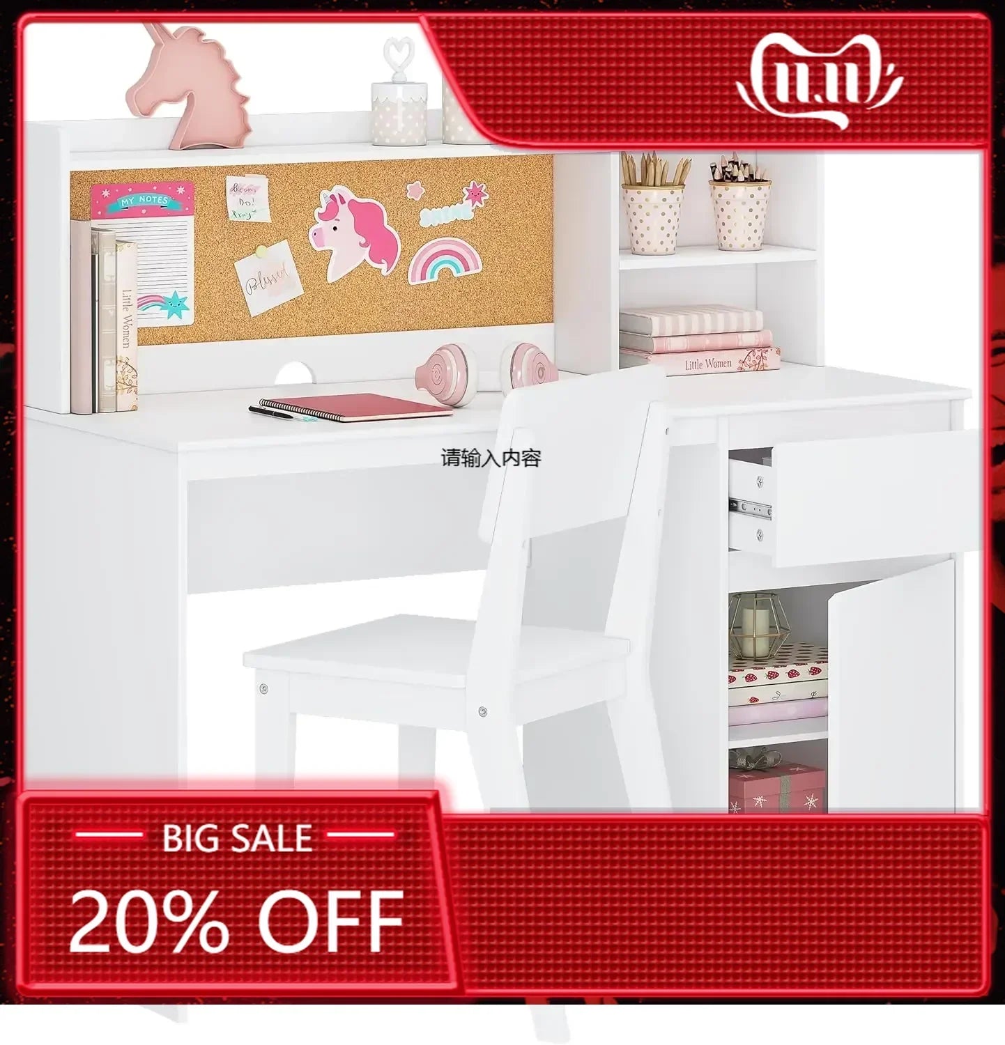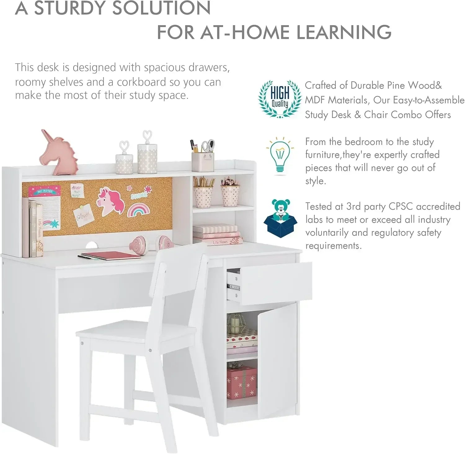 Study Desk with Chair Kids and Sets Hutch Storage