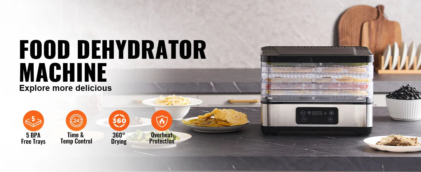 SucceBuy Tray Food Dehydrator Machine 300w Stainless Steel Electric - Adjustable Height