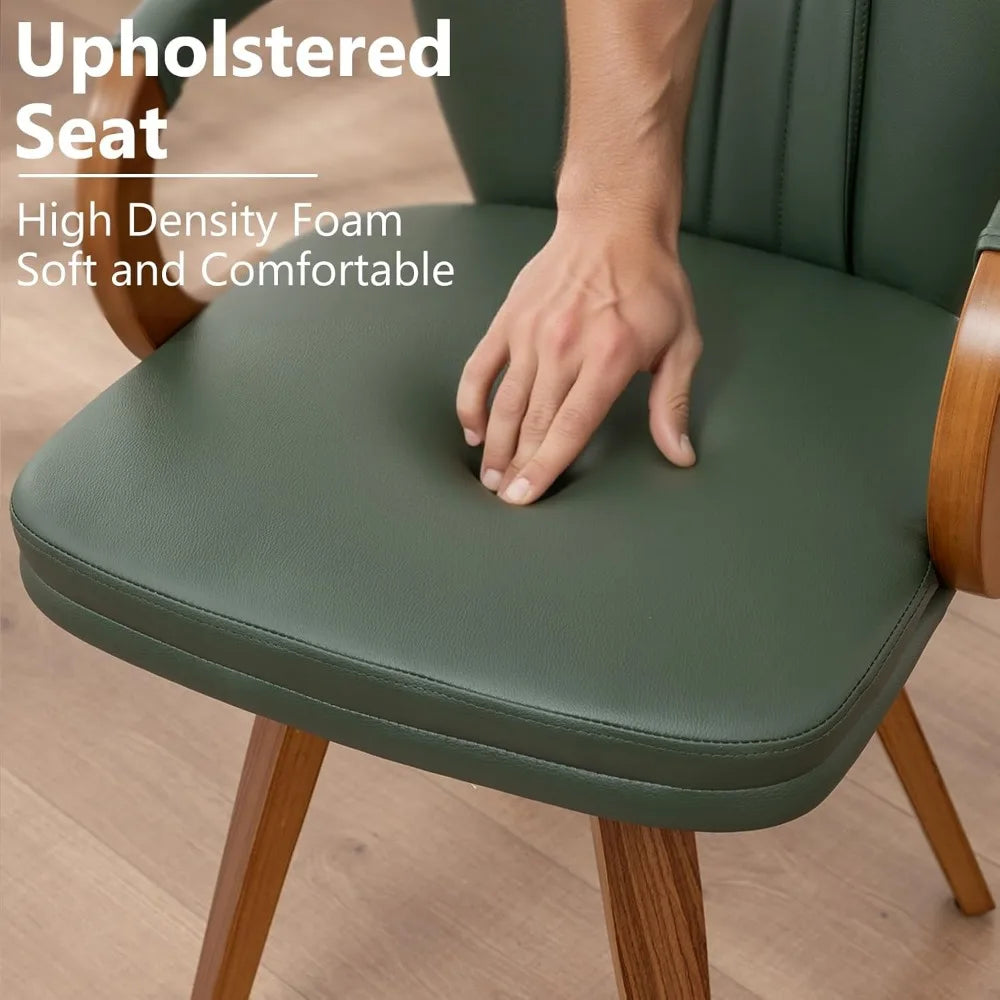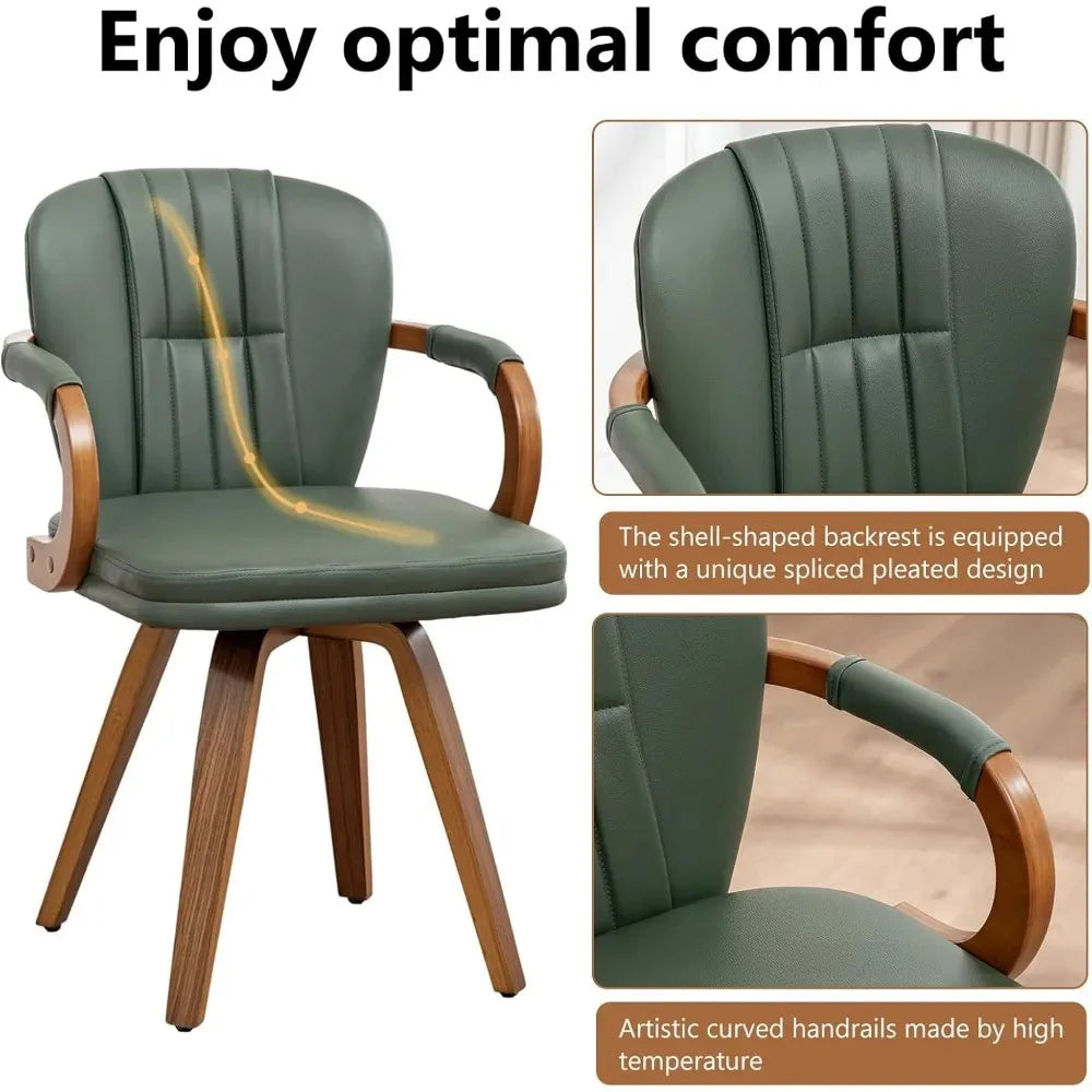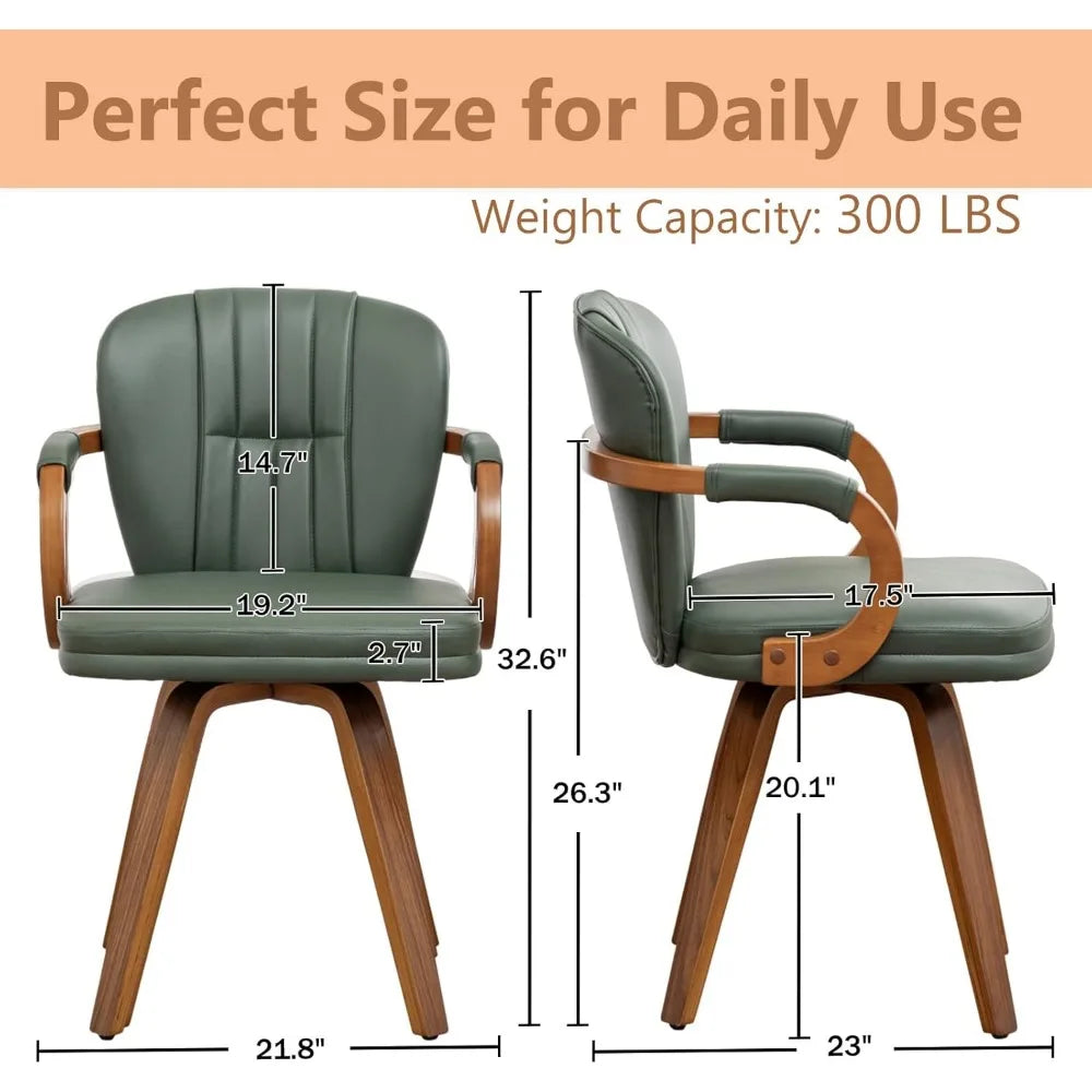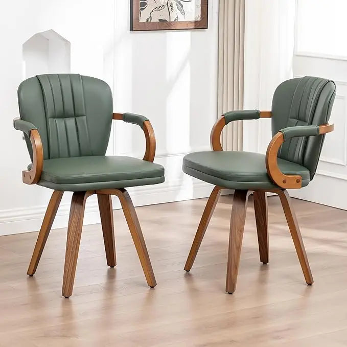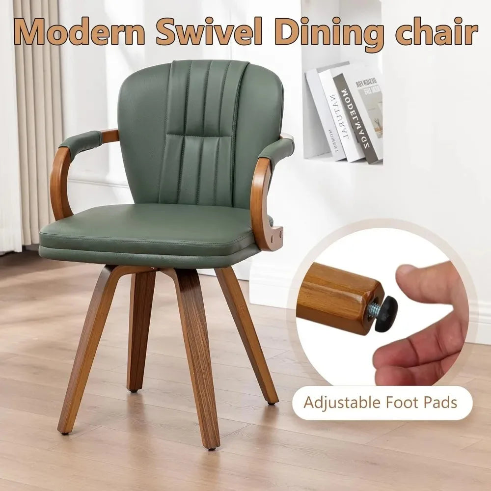 Swivel Dining Chairs Set Mid Century Modern Green Leather