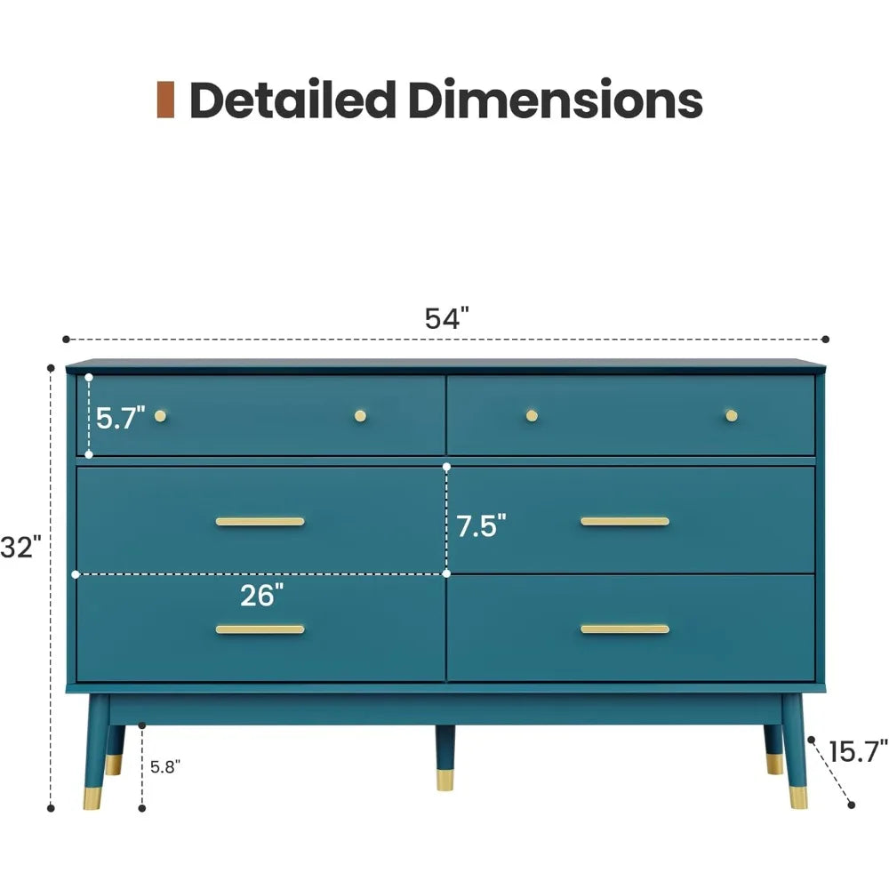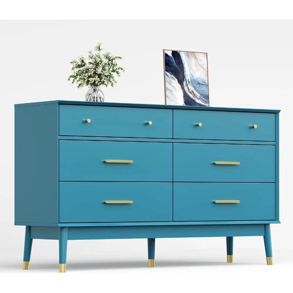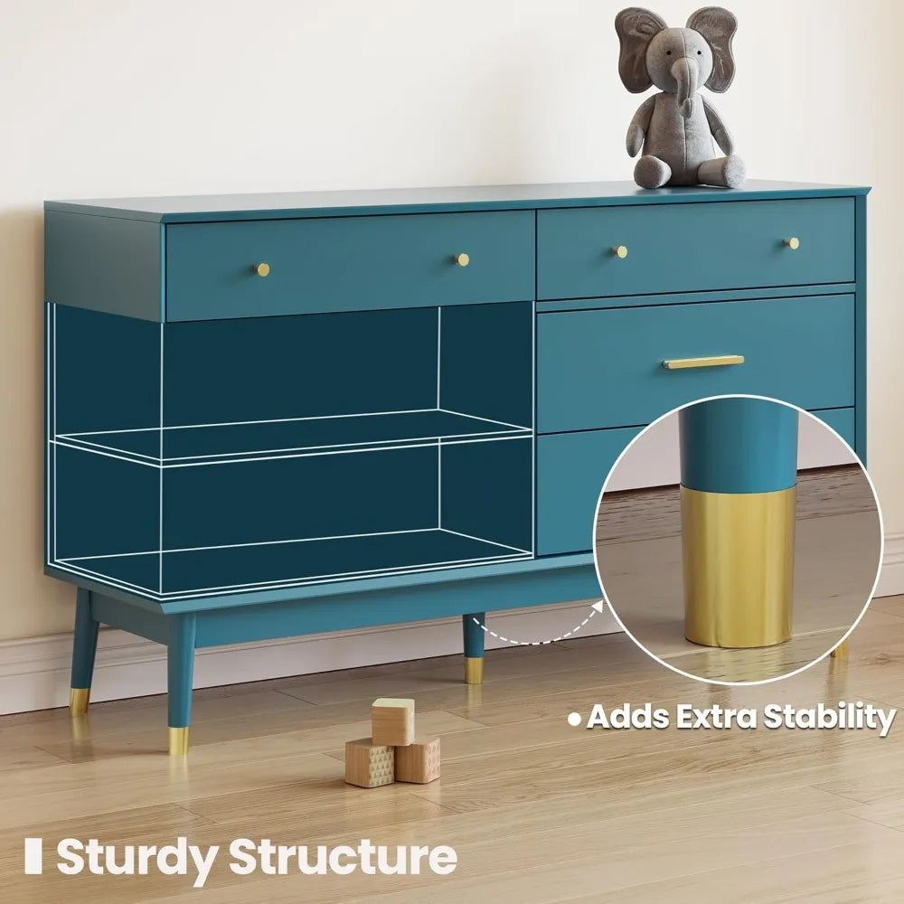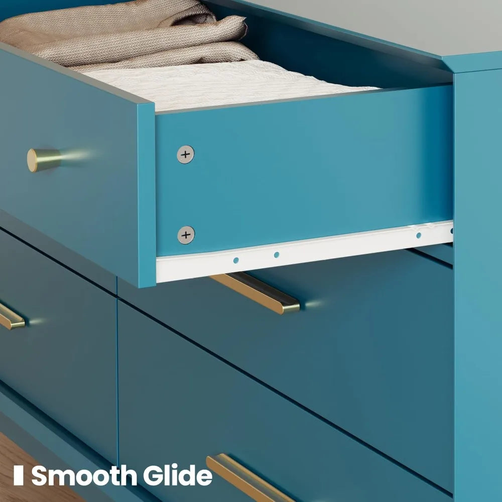 Teal Blue Drawer Dresser Modern Storage Chest with Gold