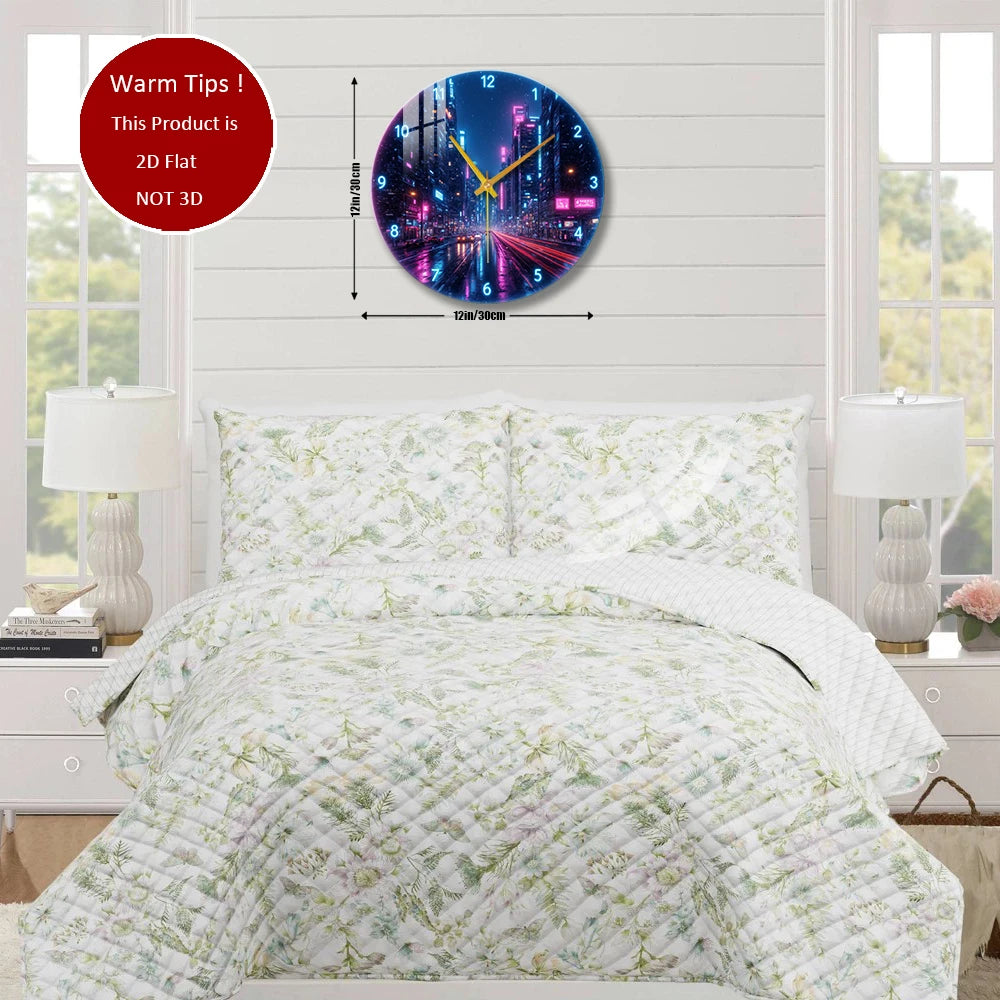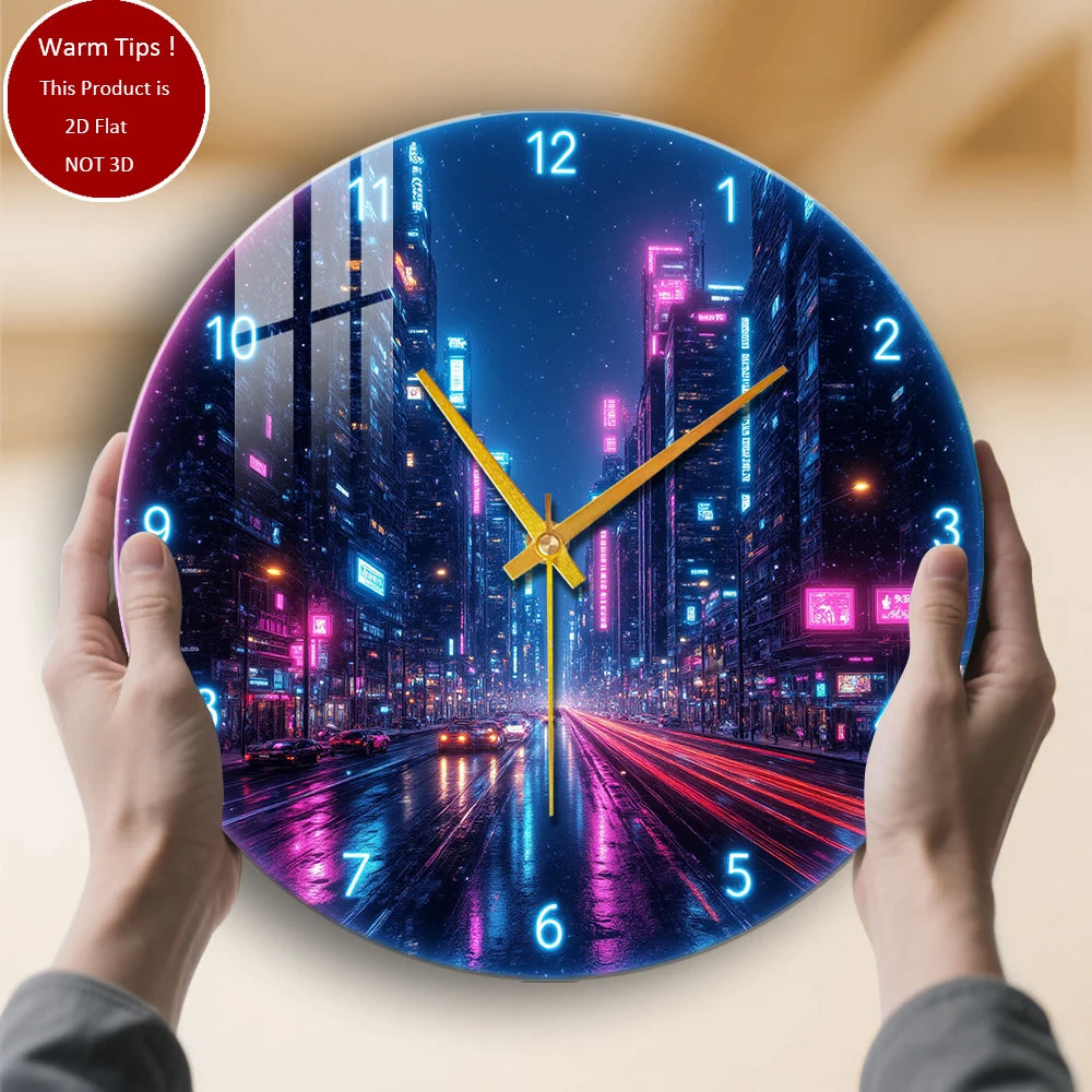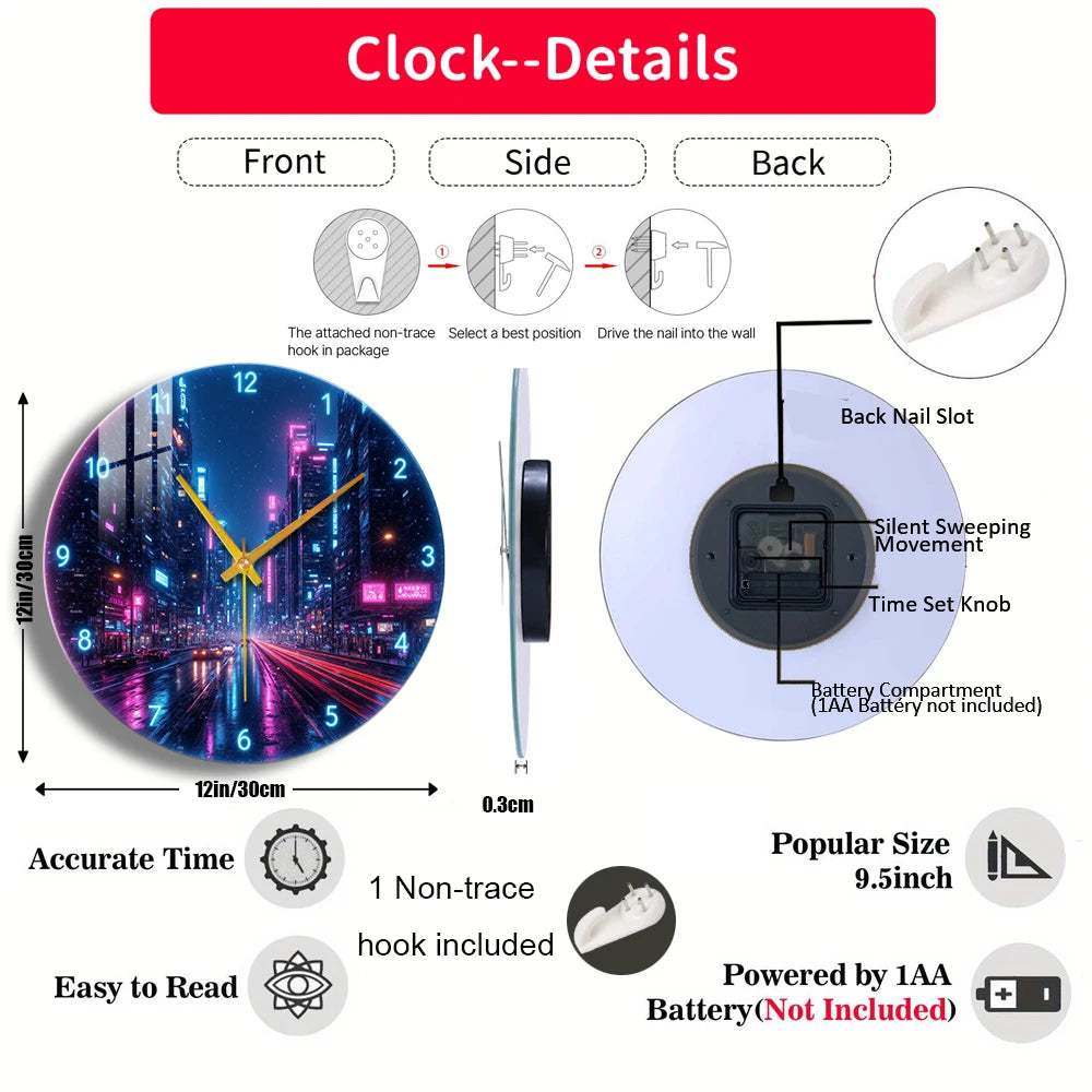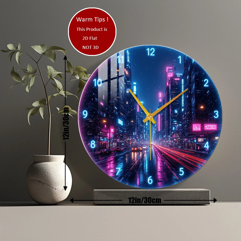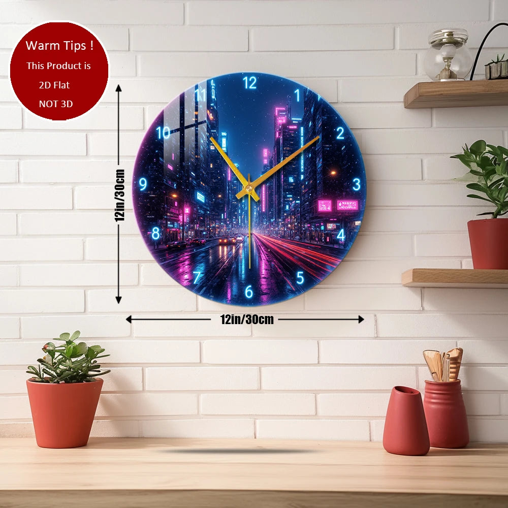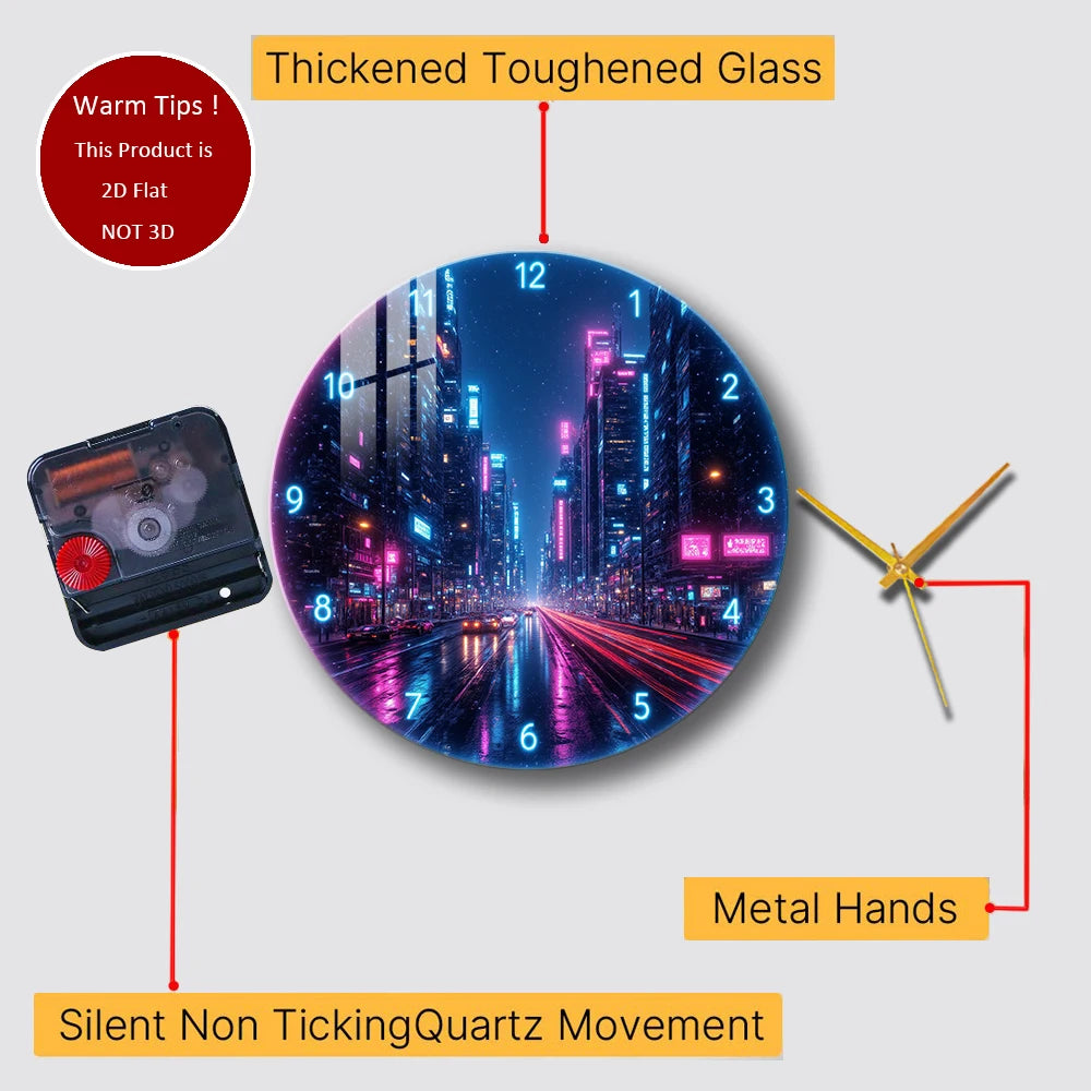 Tempered Glass Wall Clock Cyberpunk City Night Suitable For (12 inch--30x30CM)