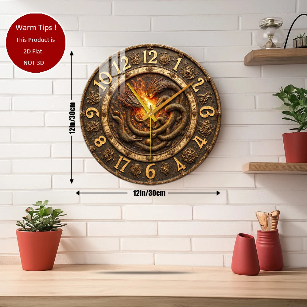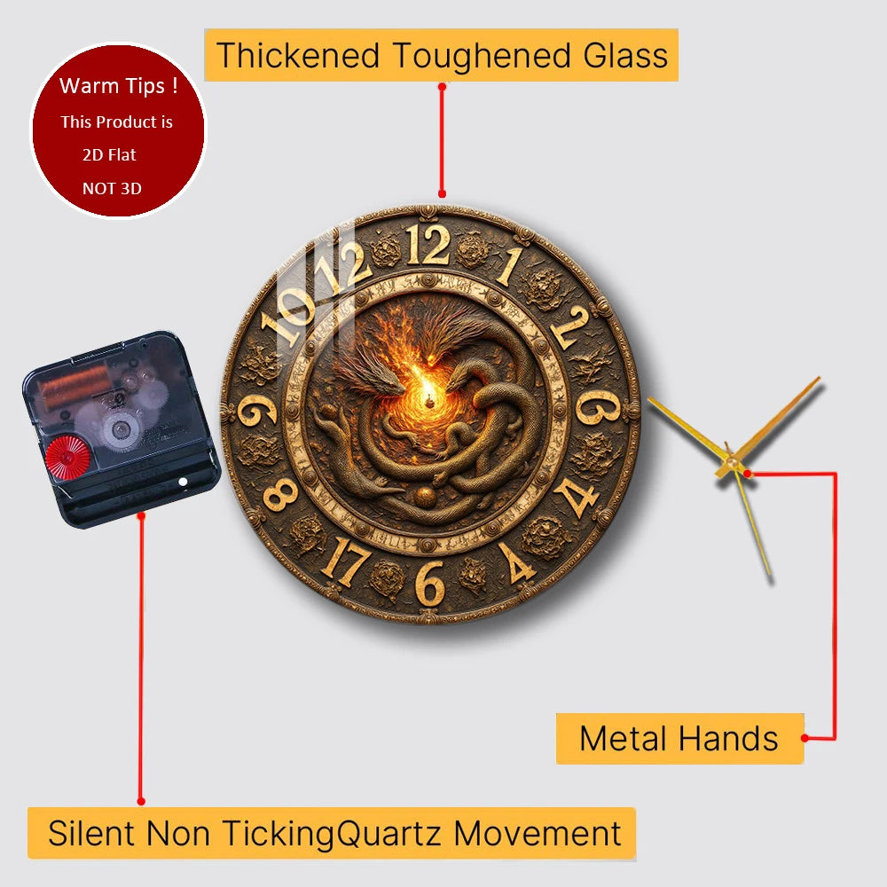 Tempered Glass Wall Clock Dragons Fire Ancient Suitable For (12 inch--30x30CM)