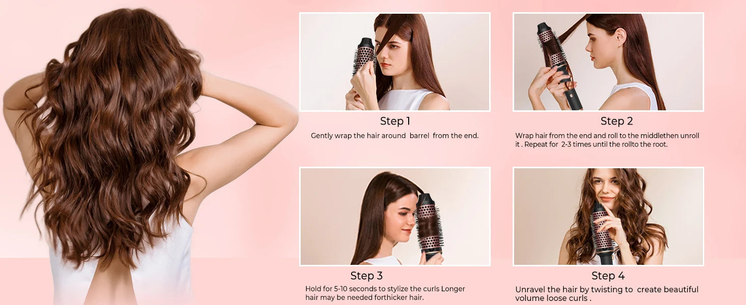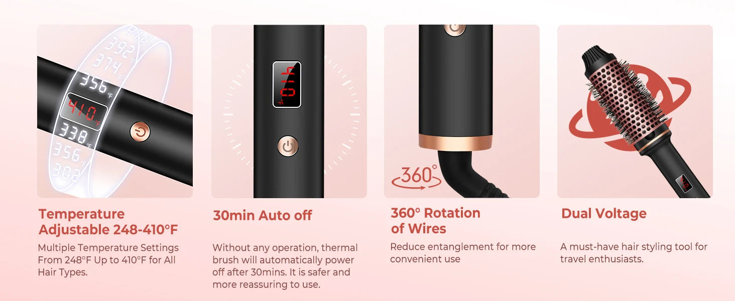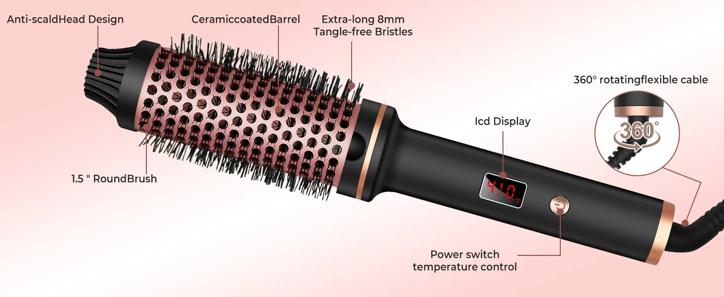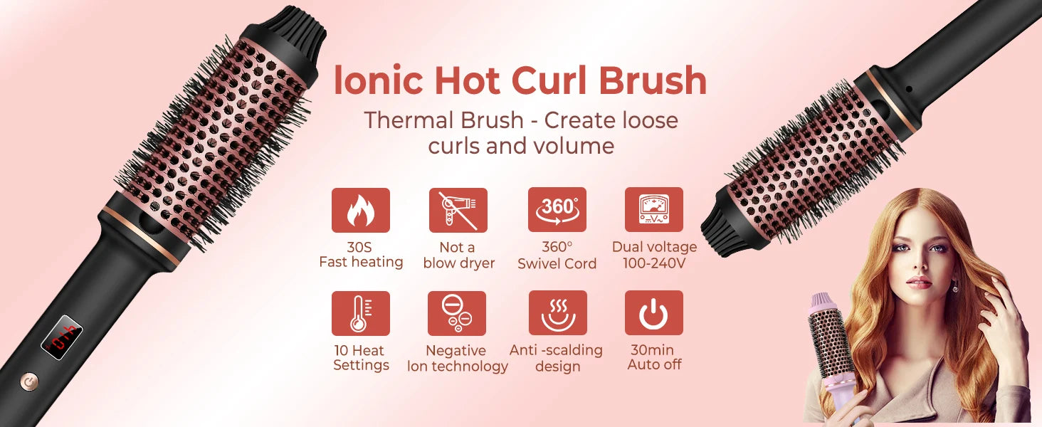 Thermal Brush Ionic Heated Round Hair Curling Iron With