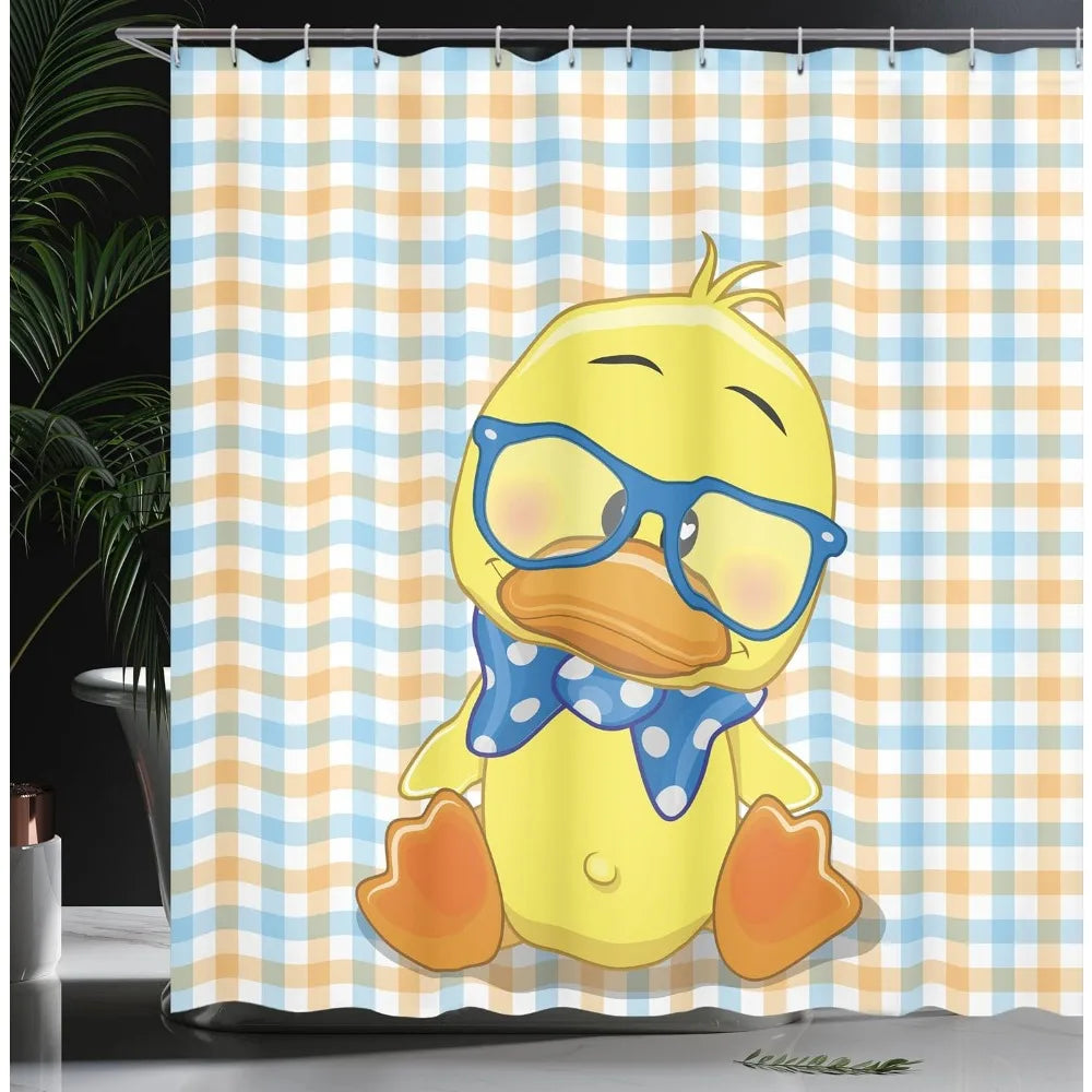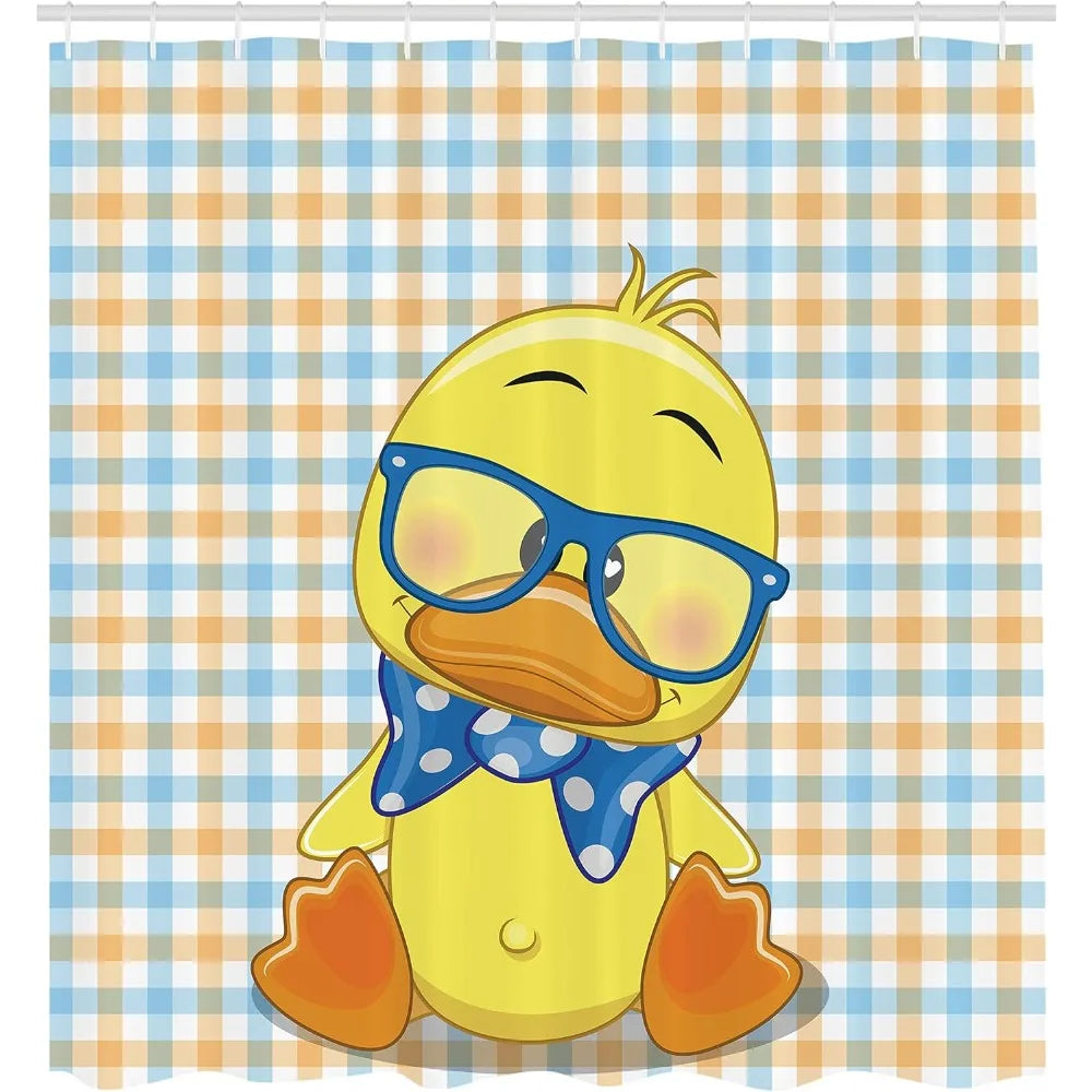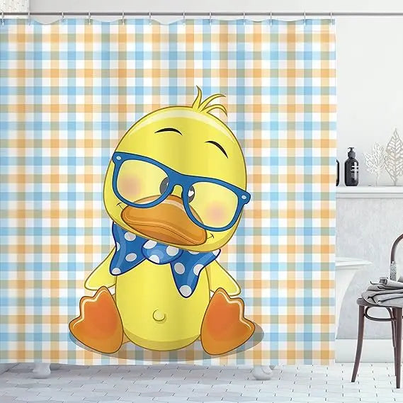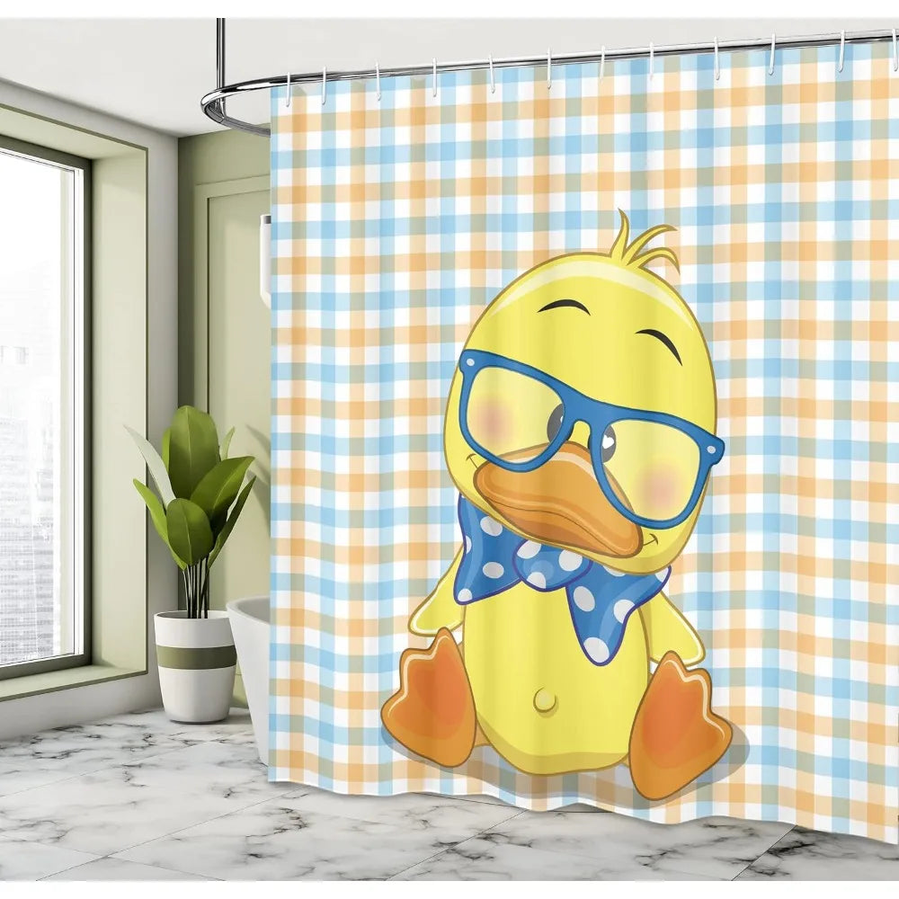 Trendy Boho Duck Shower Curtain with Geometric Bows And