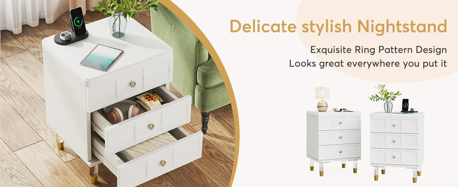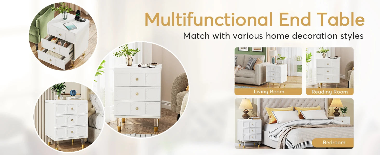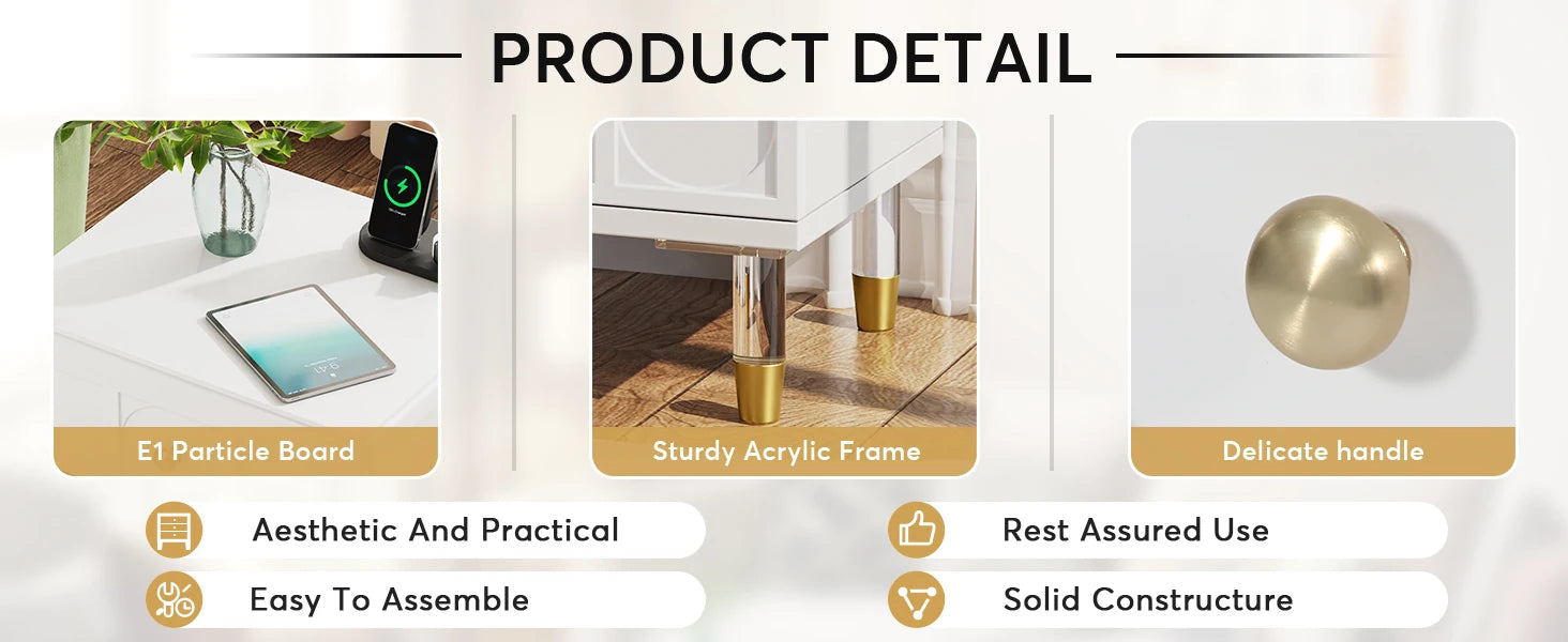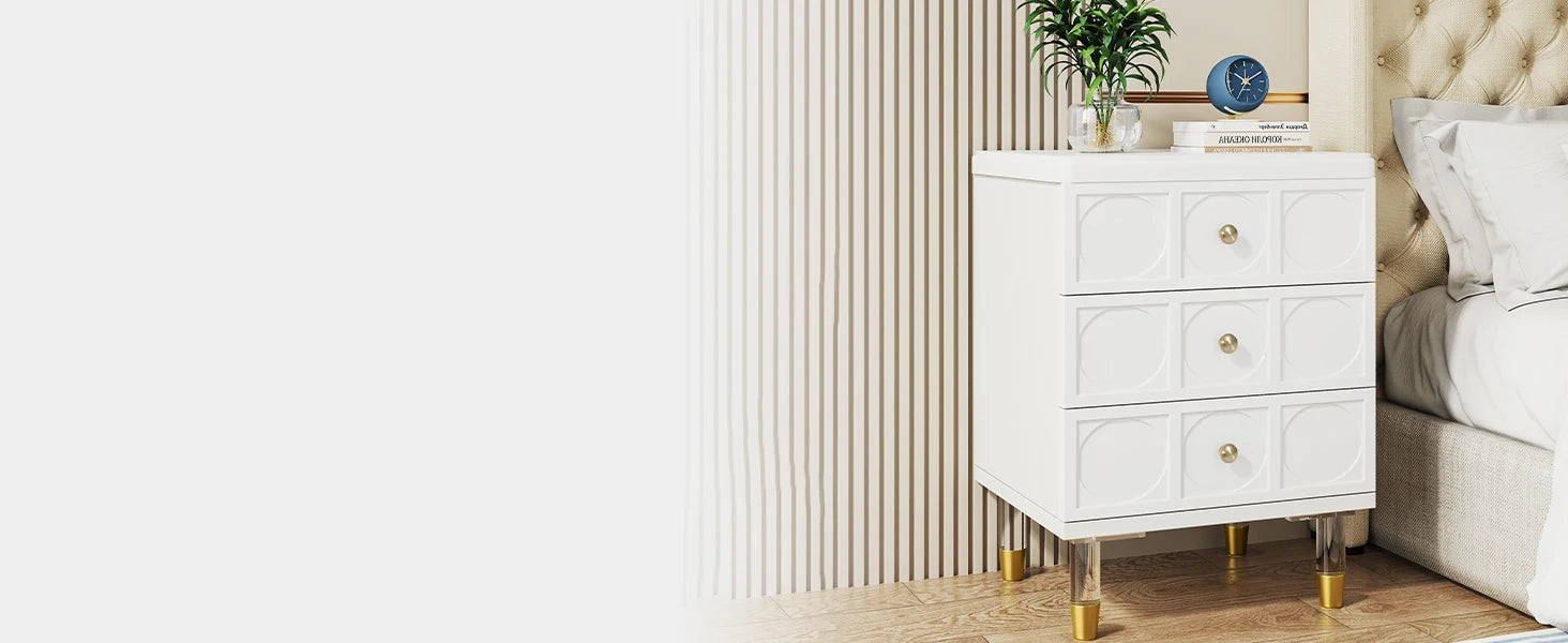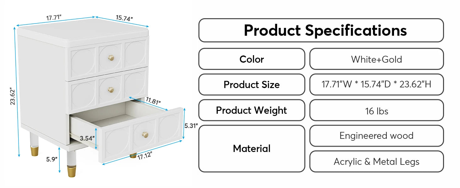 Tribesigns Drawer Nightstand Tall White and Gold Bedside Table