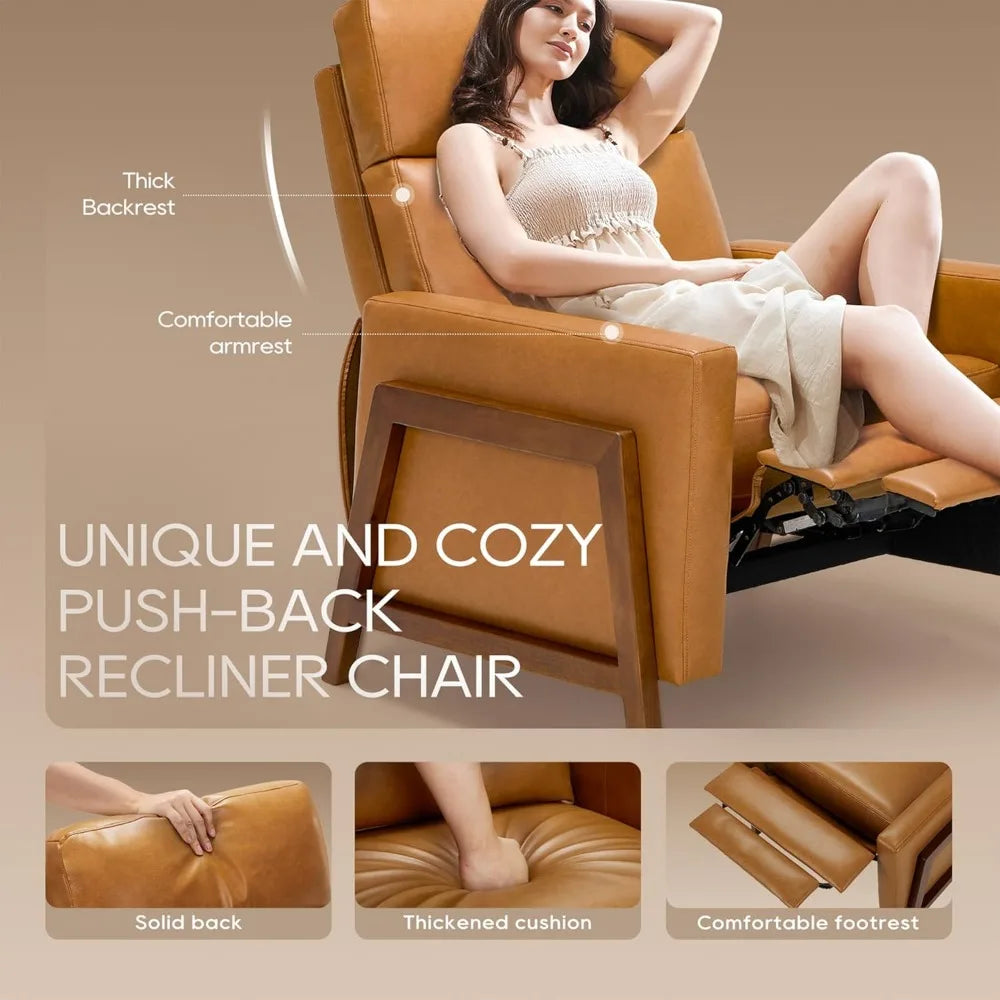 Upholstered Leather Recliner Chair Set Piece with Adjustable Footrest - Adjustable Height