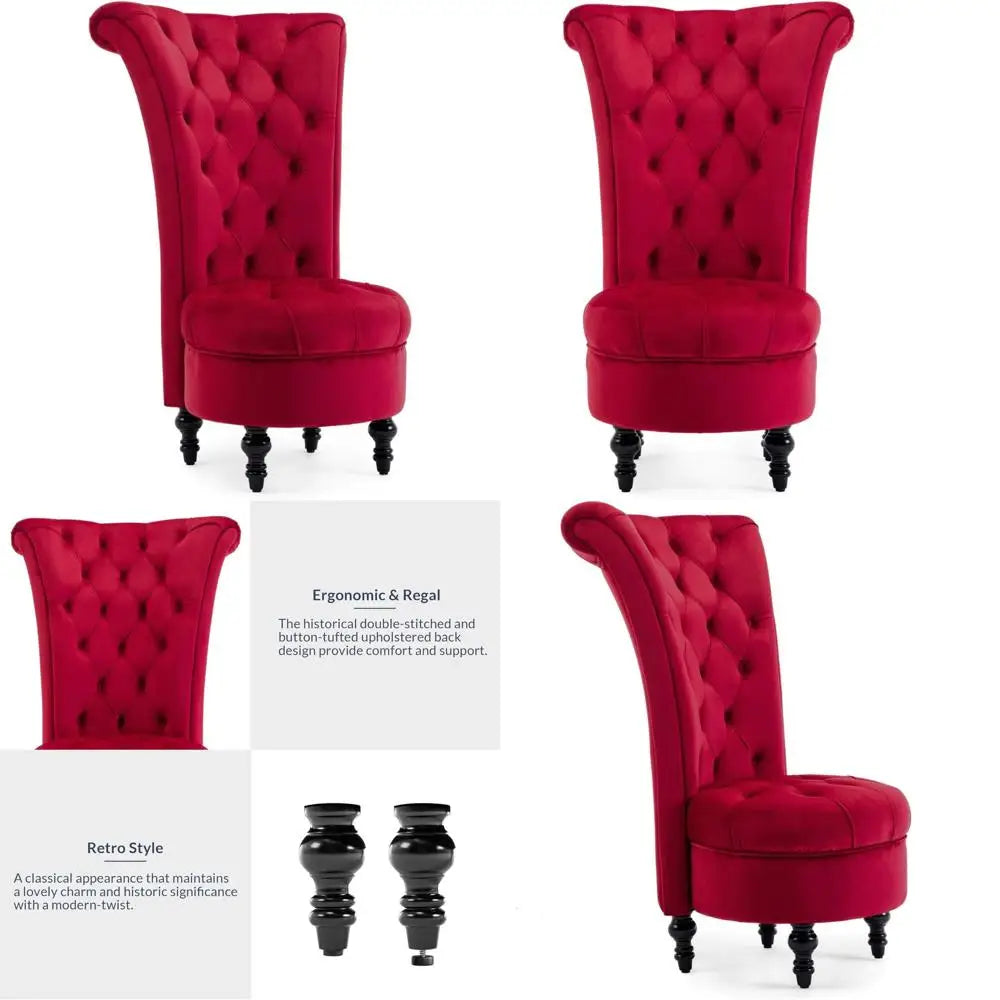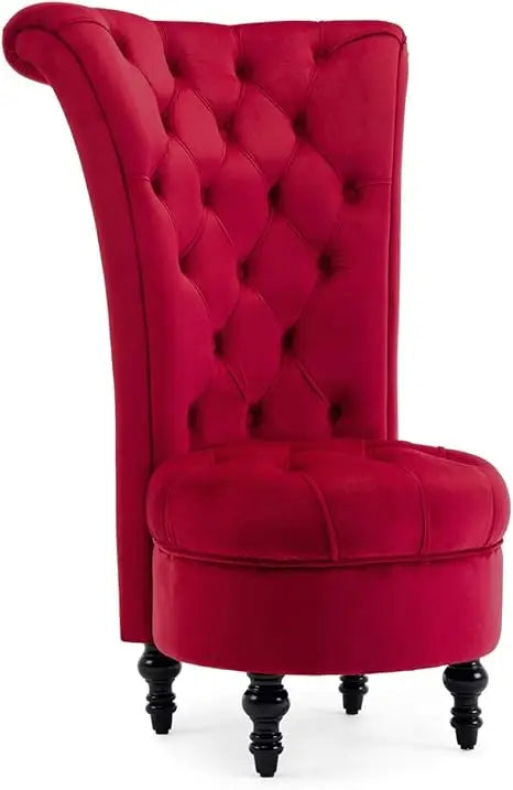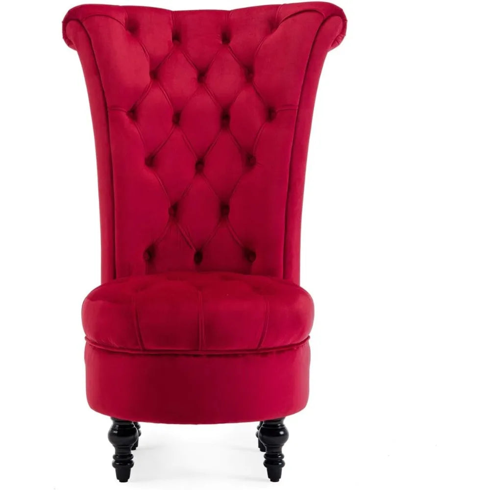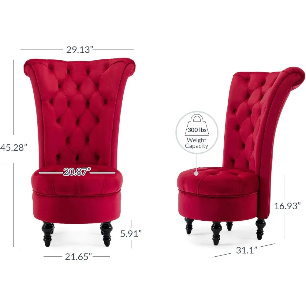 Velvet Accented Gothic Style Chair High Back Buttoned Detail
