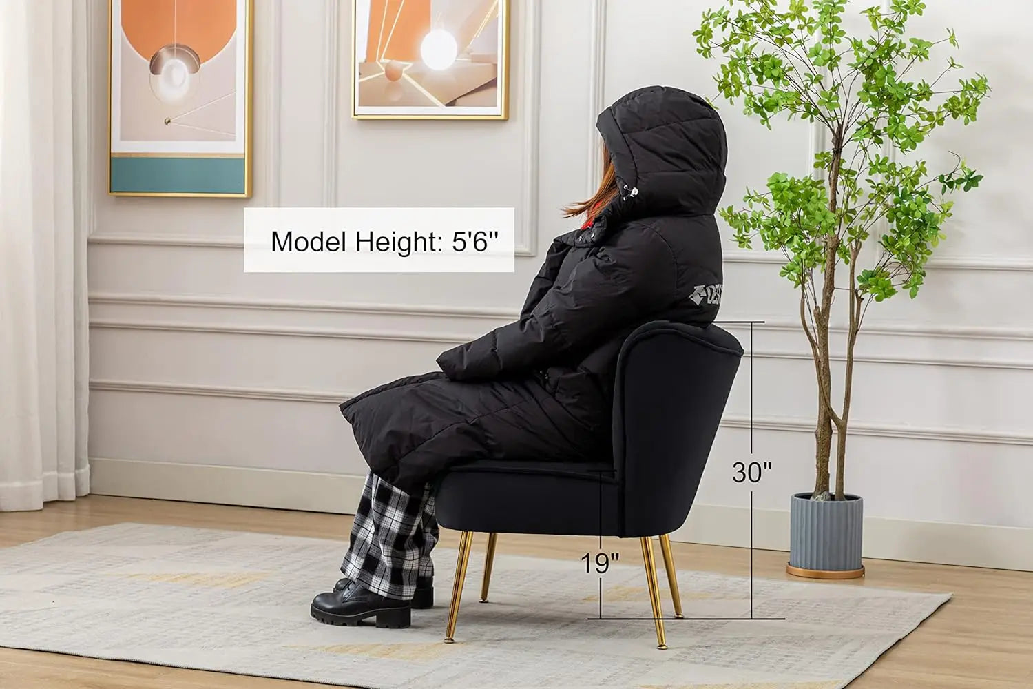 Velvet Black Accent Chairs Set Modern Wingback Slipper With