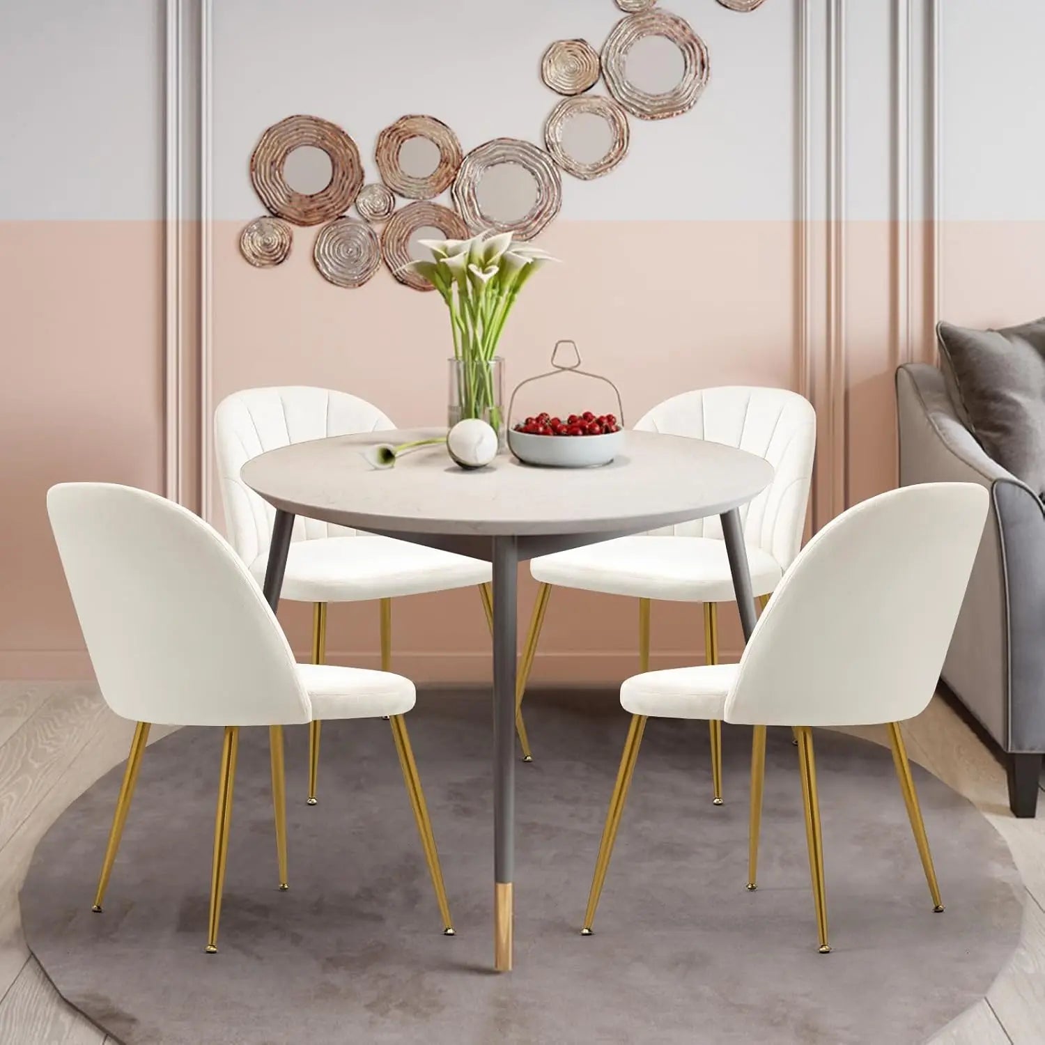 Velvet Dining Chairs Set Upholstered Modern Armchairs with Gold