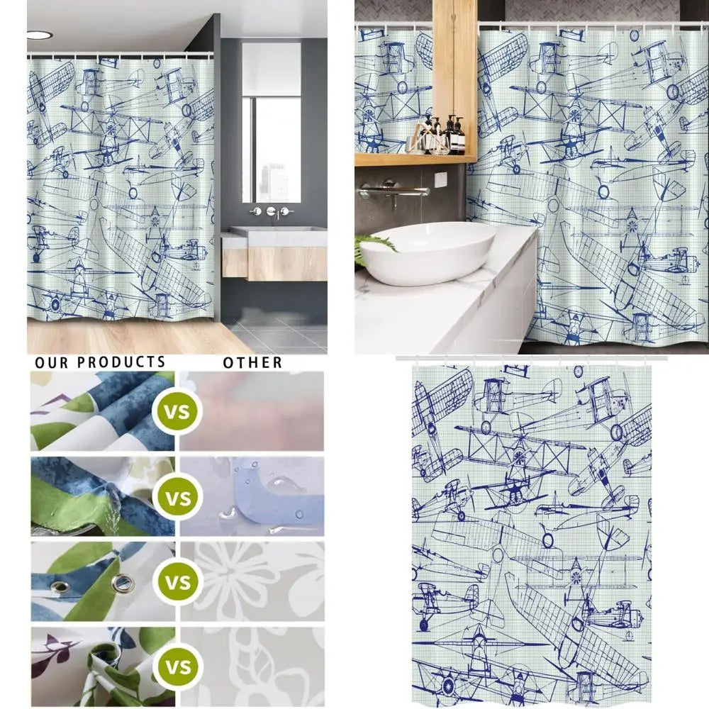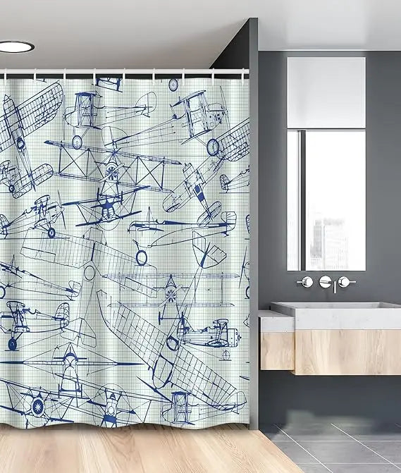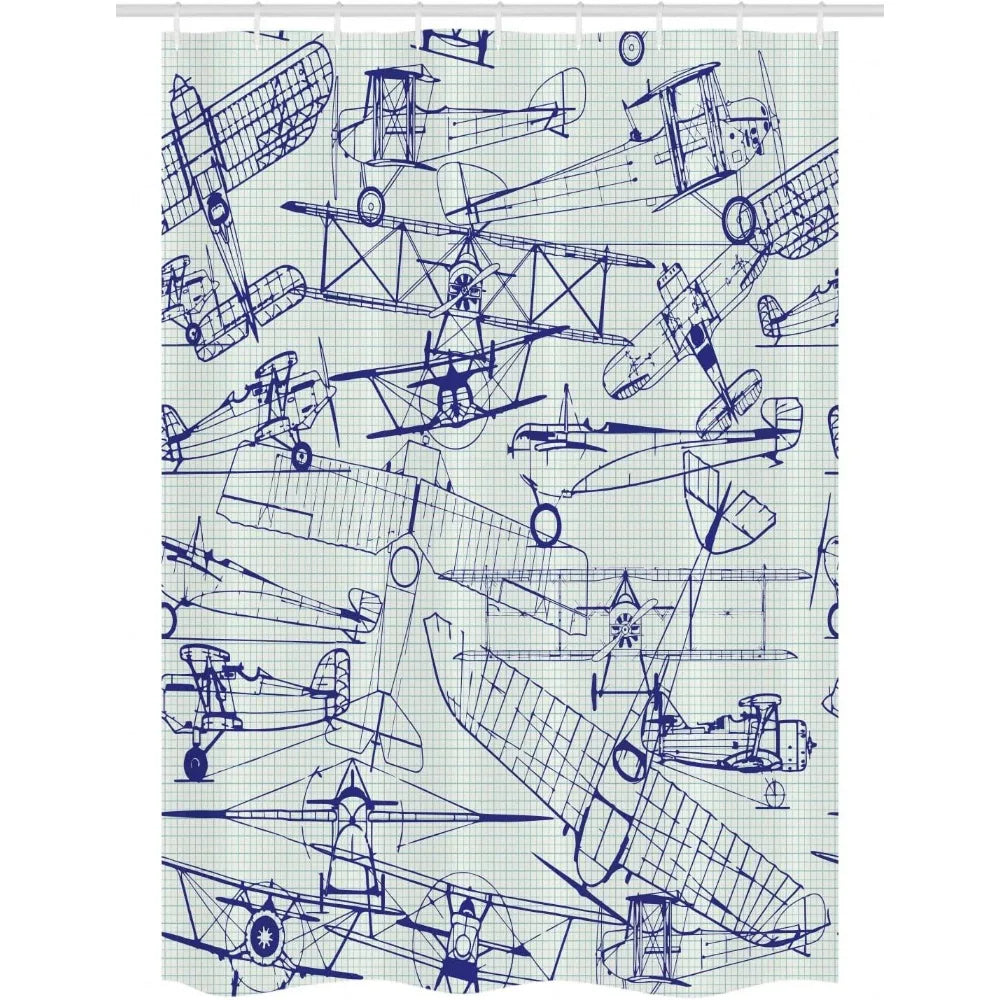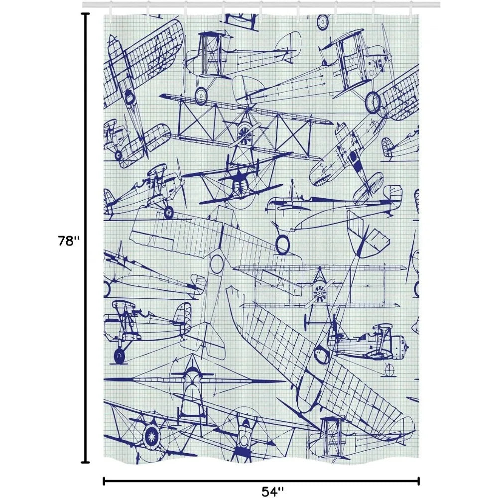 Vintage Style Airplane Shower Curtain Classic Aviation Art