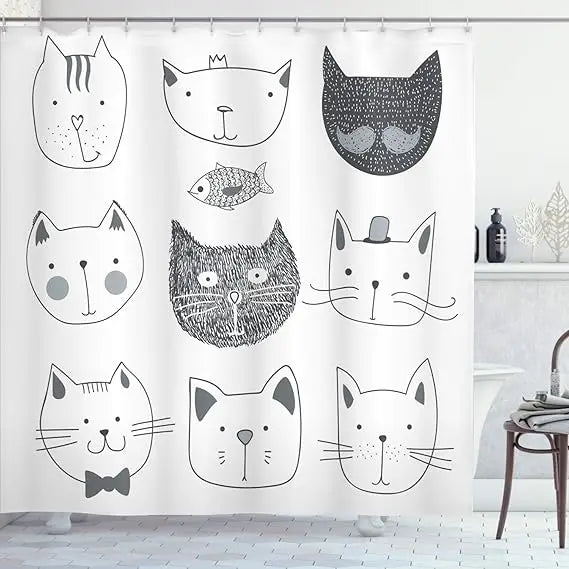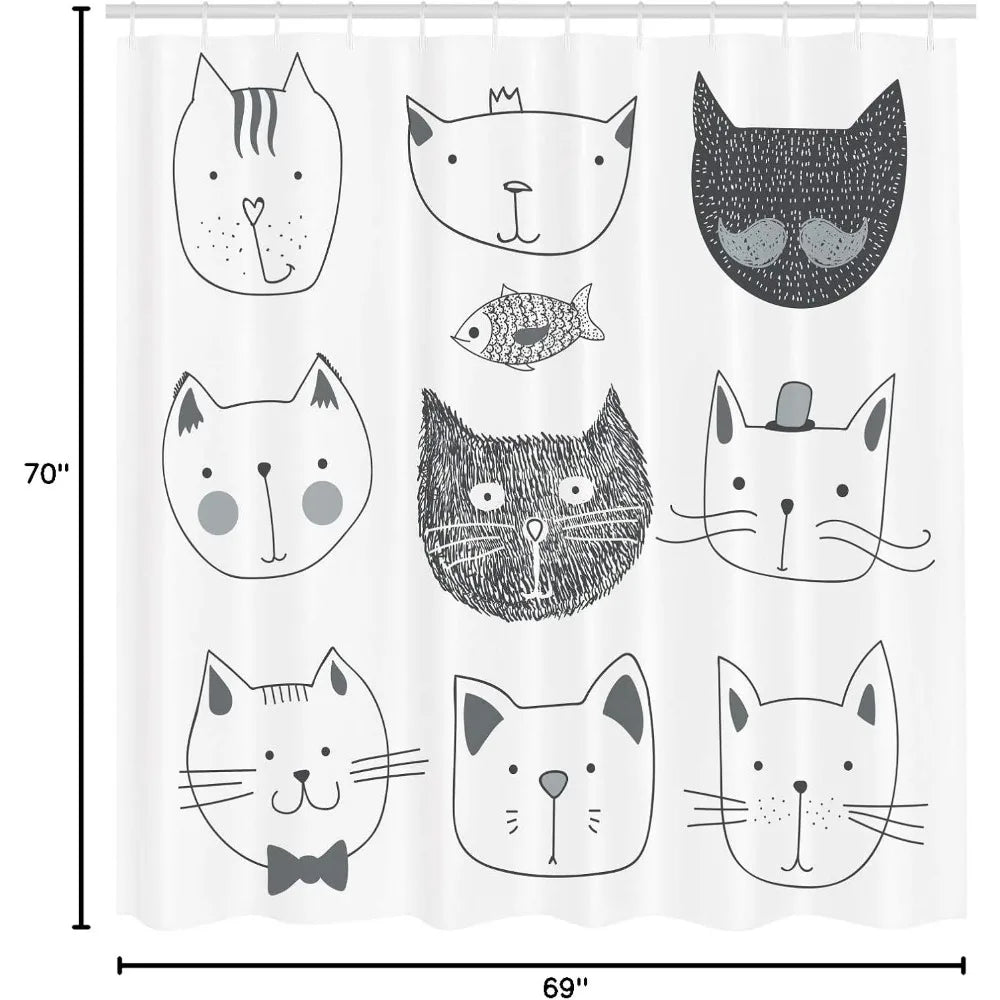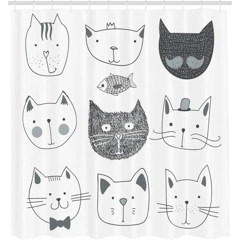 Whimsical Cat Shower Curtain with Bow Tie Crown And