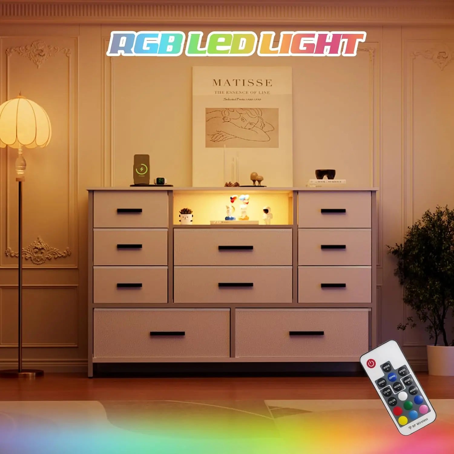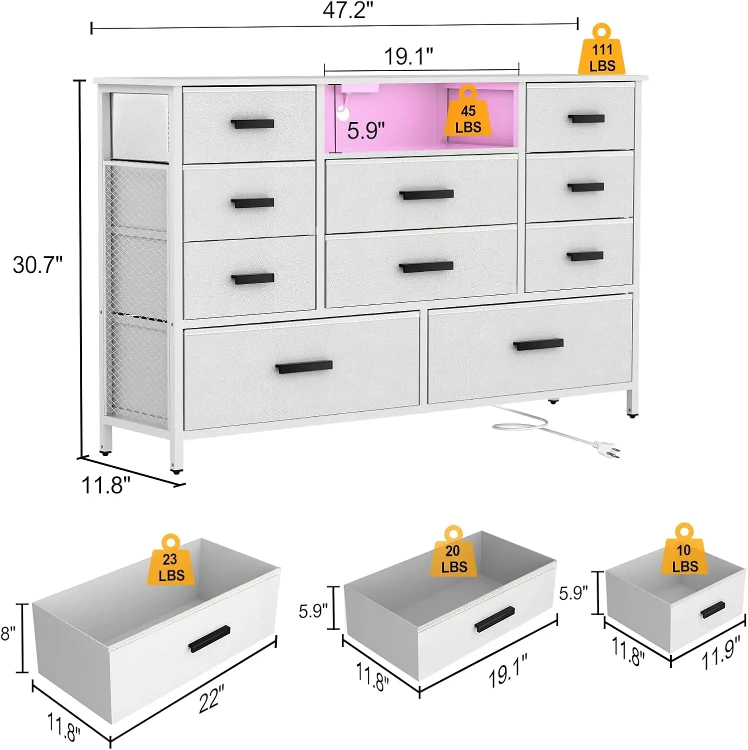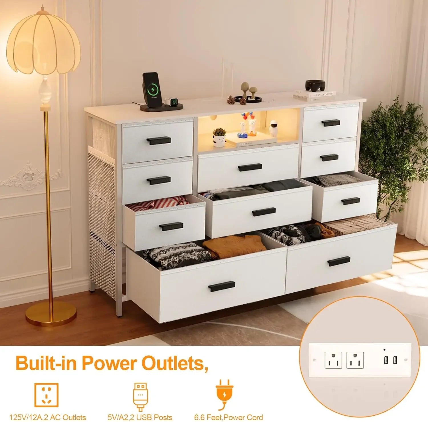 White Dresser for Bedroom with Drawers Charging Station Stand