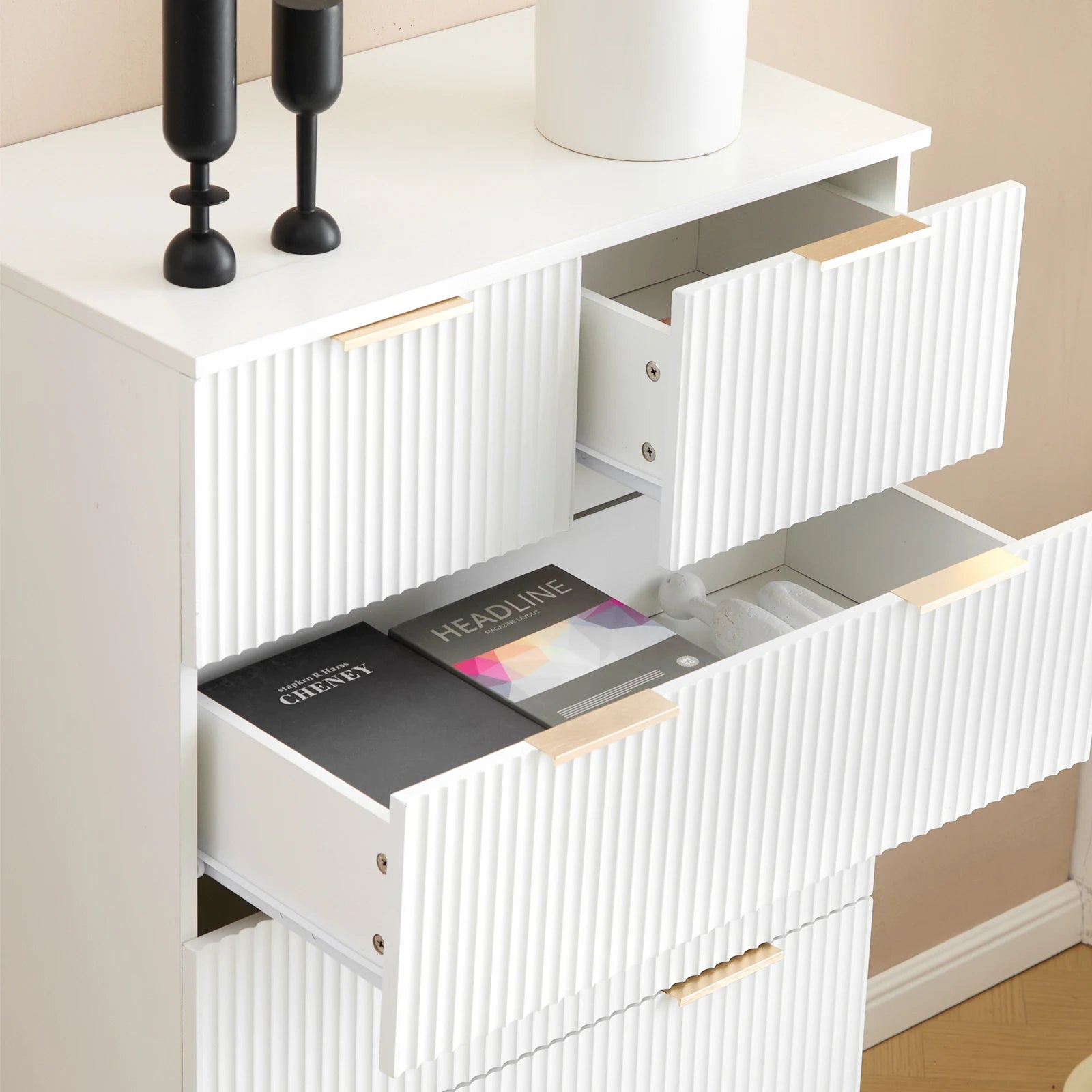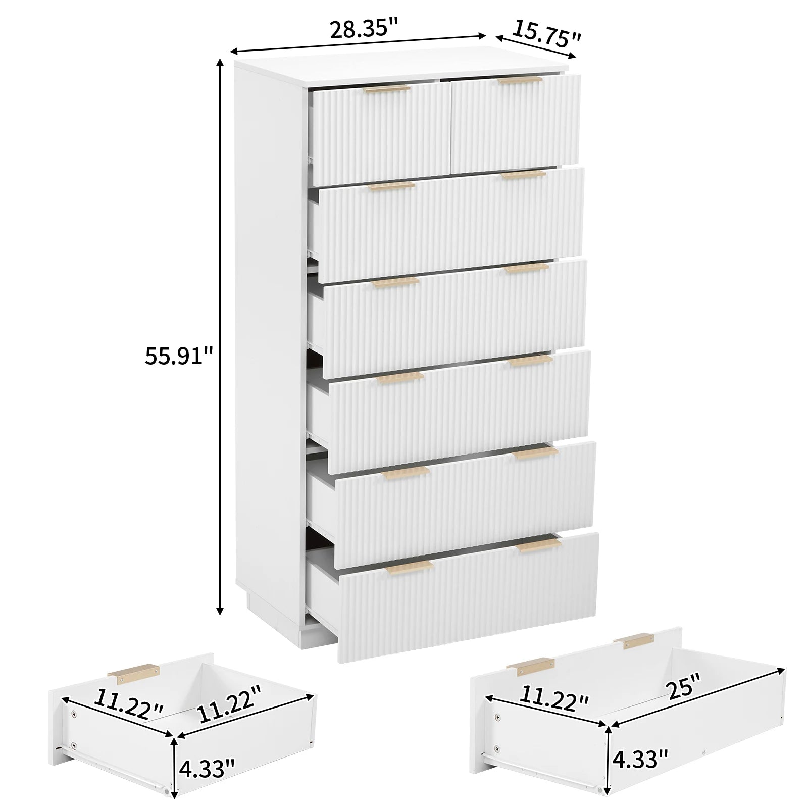 White Dressers Seven Drawers Across Six Levels Particle Board