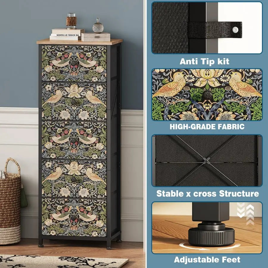 with Fabric Drawers Strawberry Thief Drawer Dresser for Bedroom