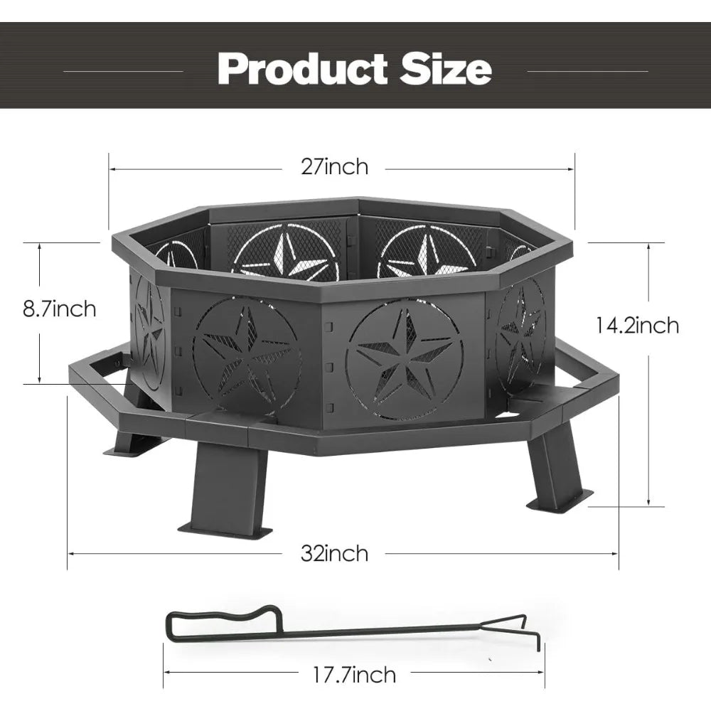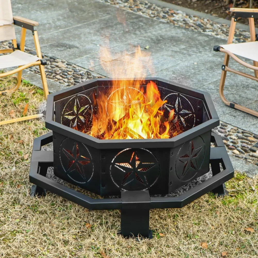 Wood Burning Octagonal Fire Pit for Outdoor Bonfires Camping