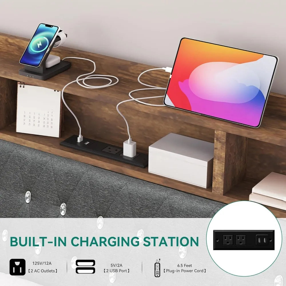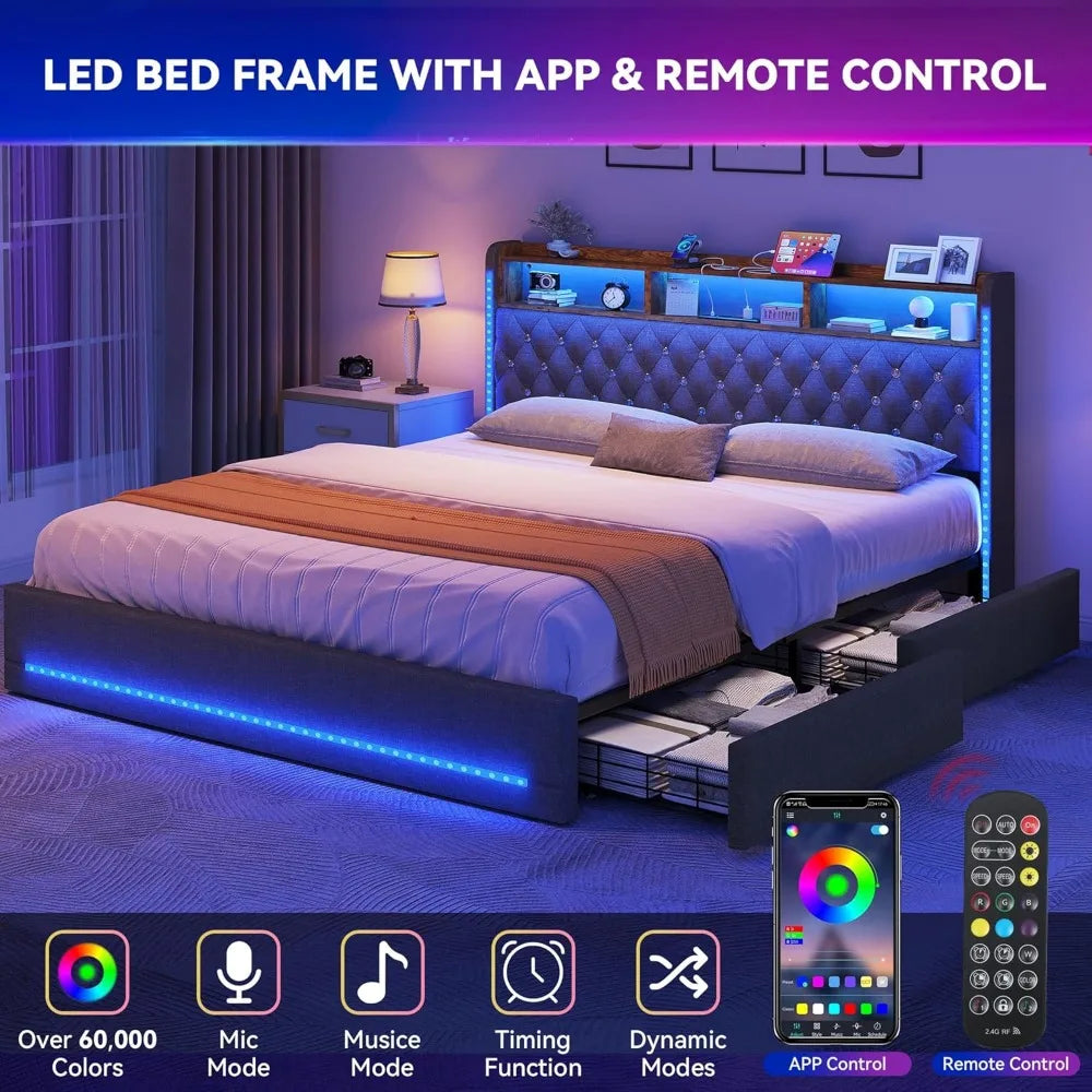 YITAHOME Queen Size Bed Frame with Storage Drawers Led
